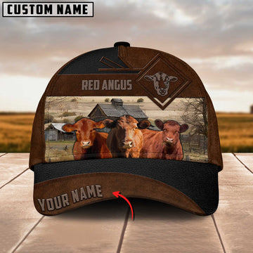 Joycorners Red Angus Custom Name Brown Leather Pattern Cap
