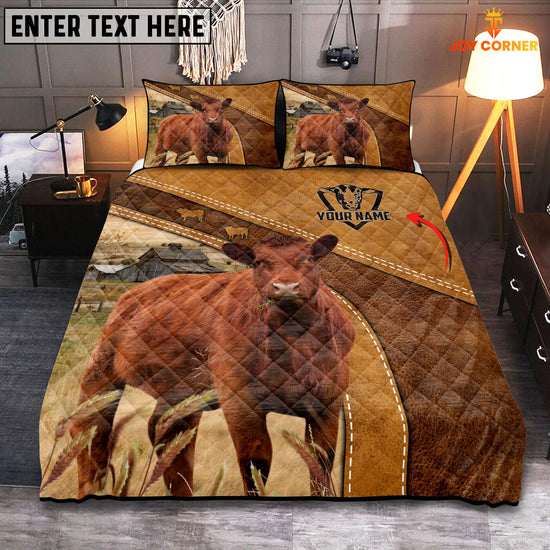 Joycorners Red Angus On Farm Quilt Bedding Set