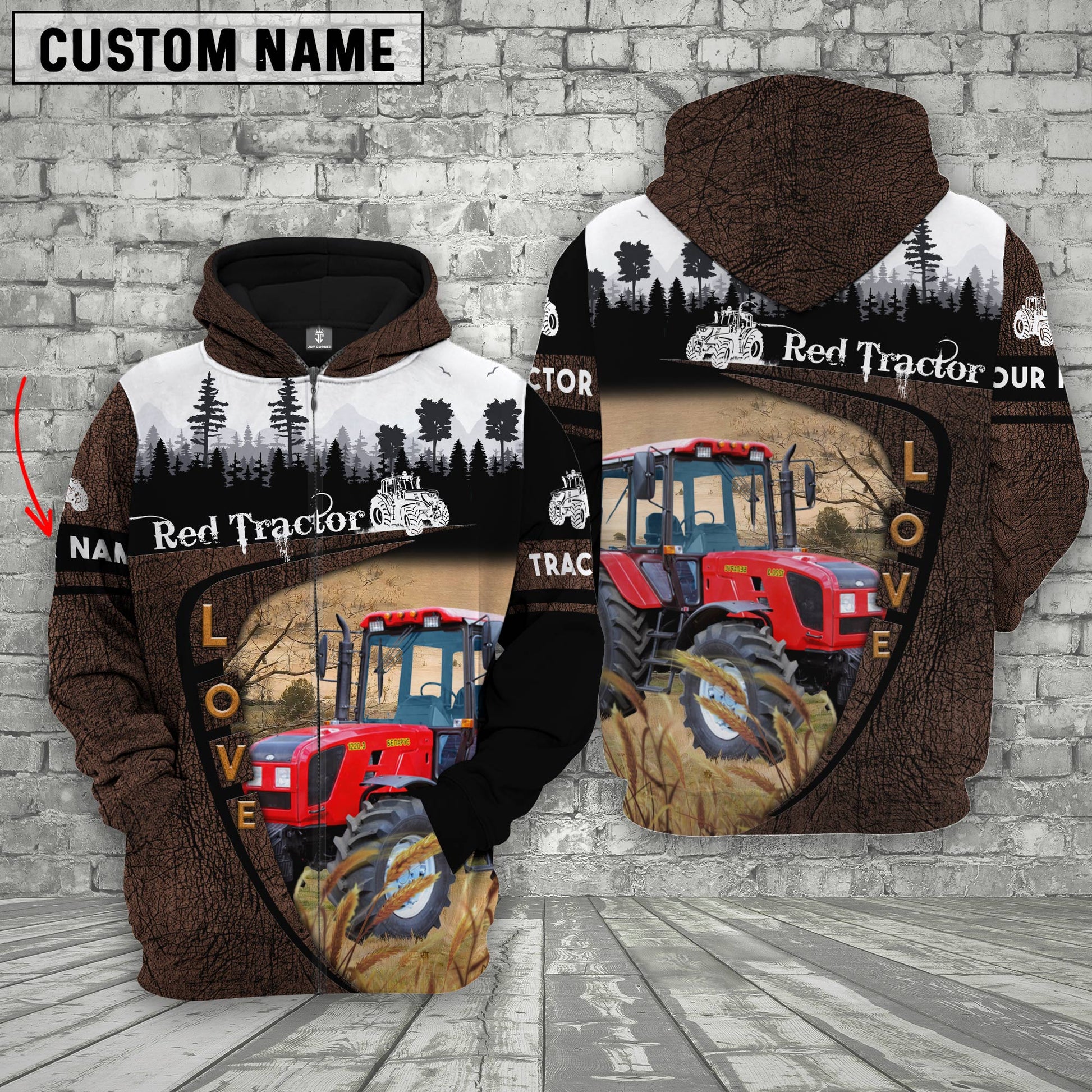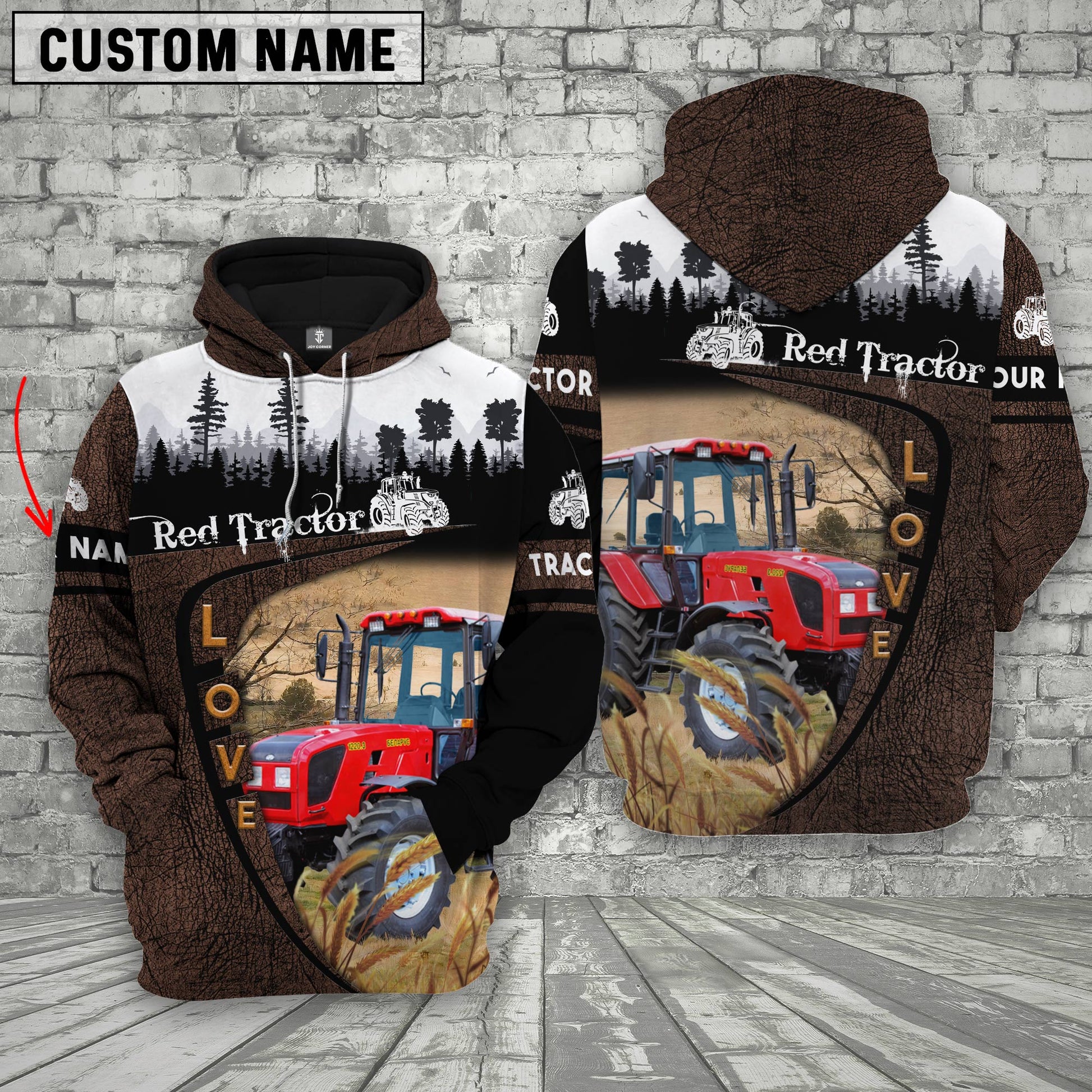 Joycorners Red Tractor On Farms Custom Name Printed 3D Wooden Forest Hoodie