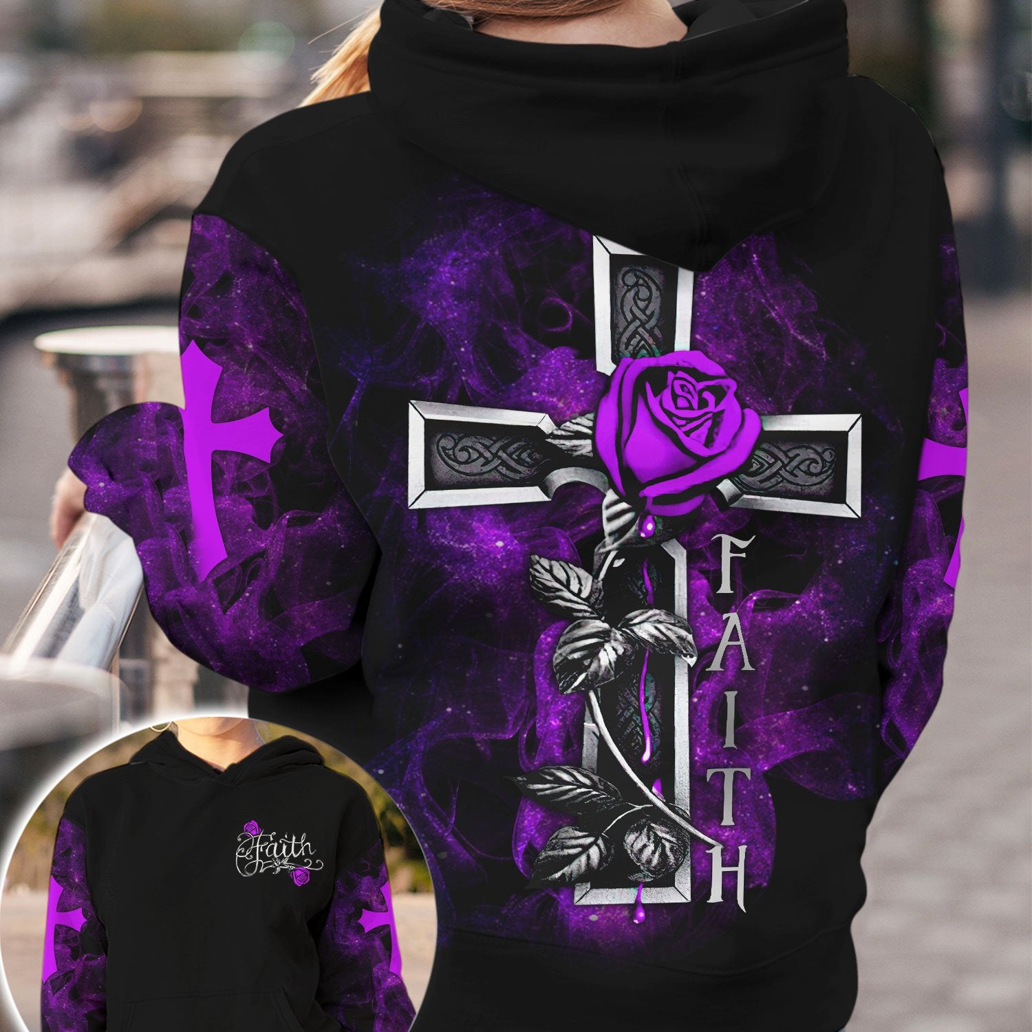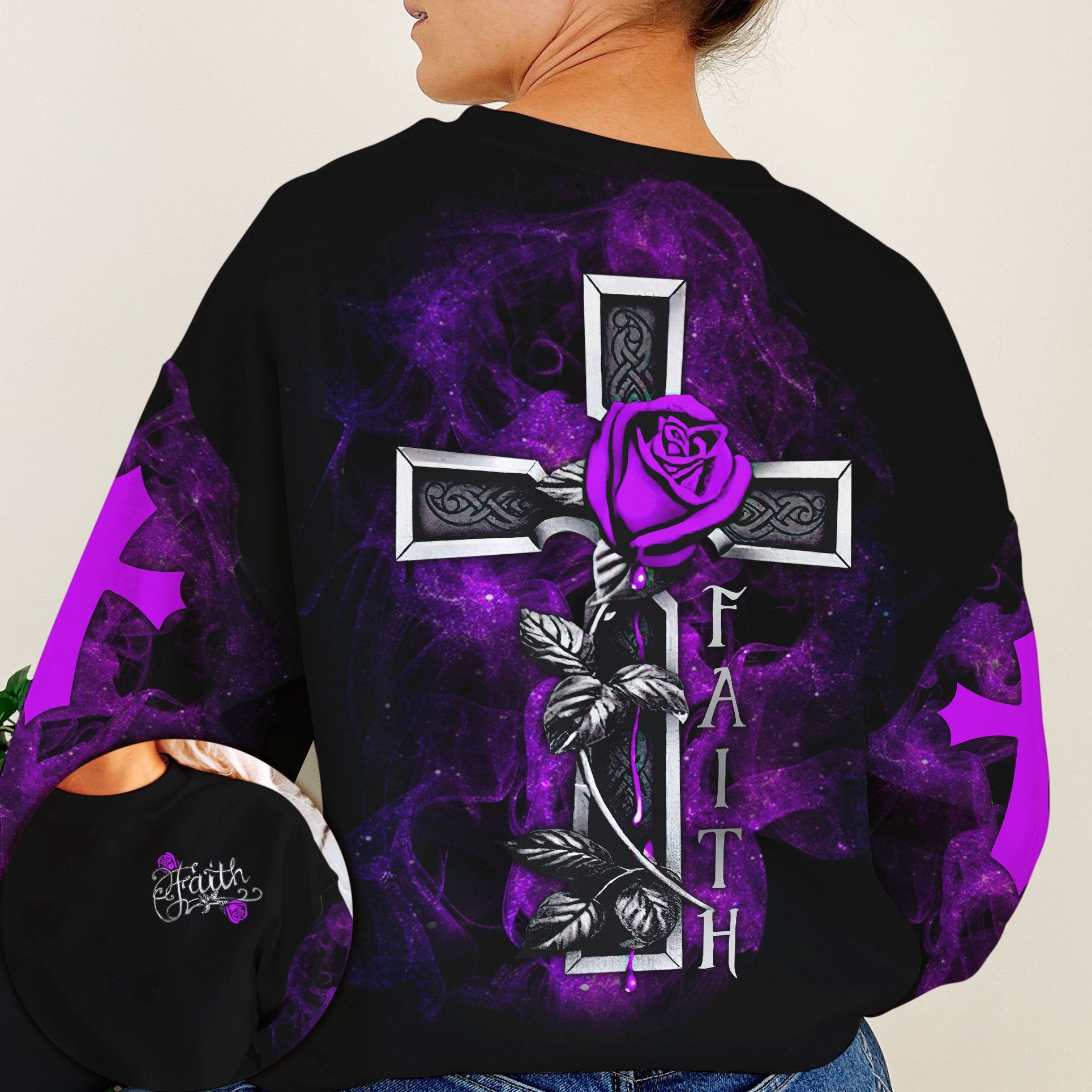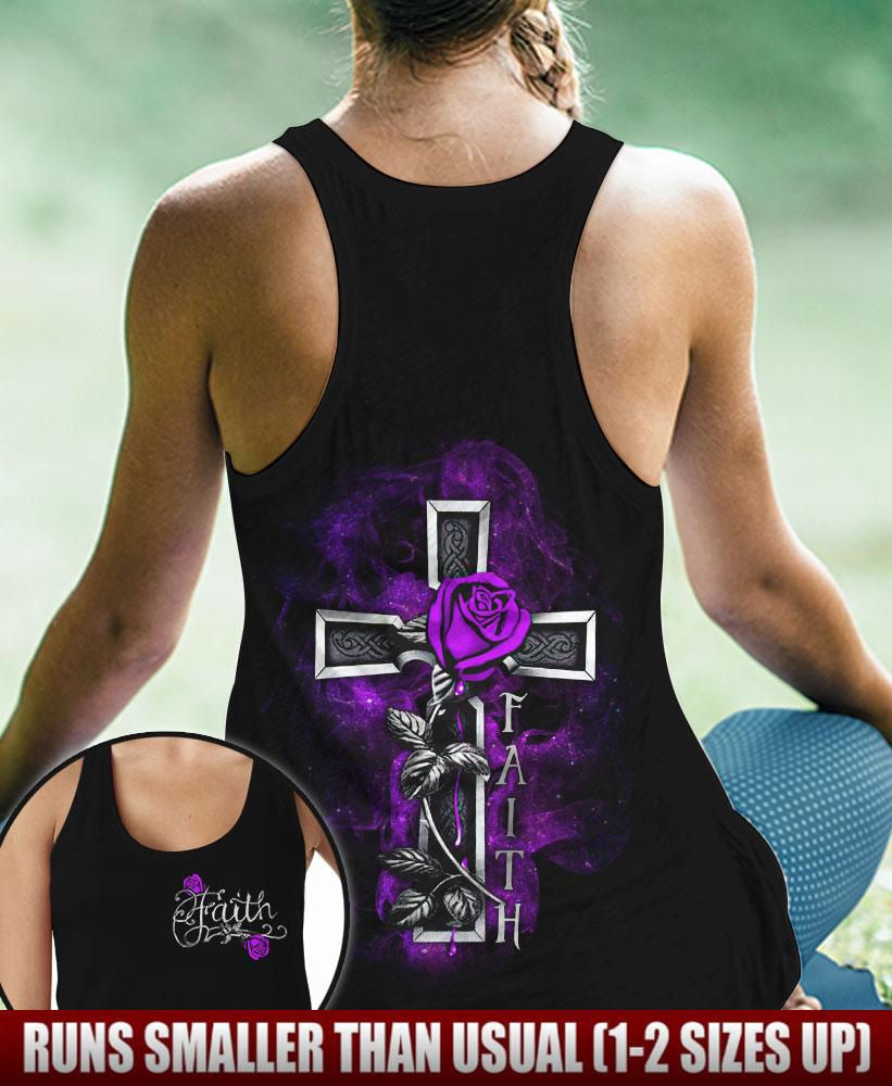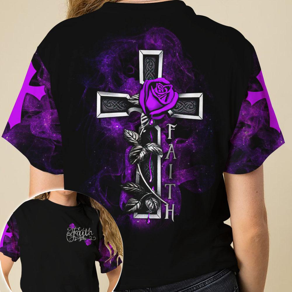 Joycorners Rose Cross Faith Purple All Over Printed 3D Shirts