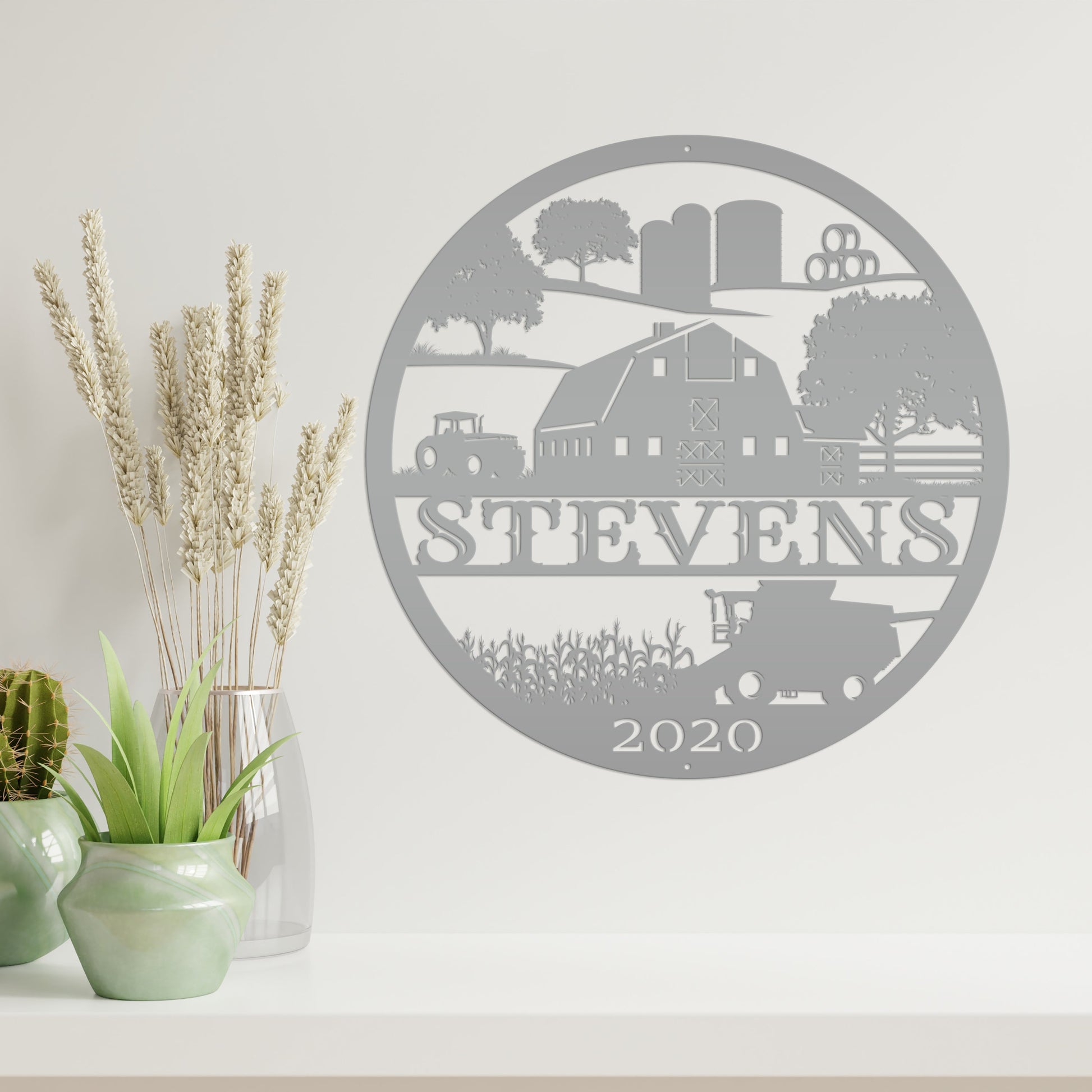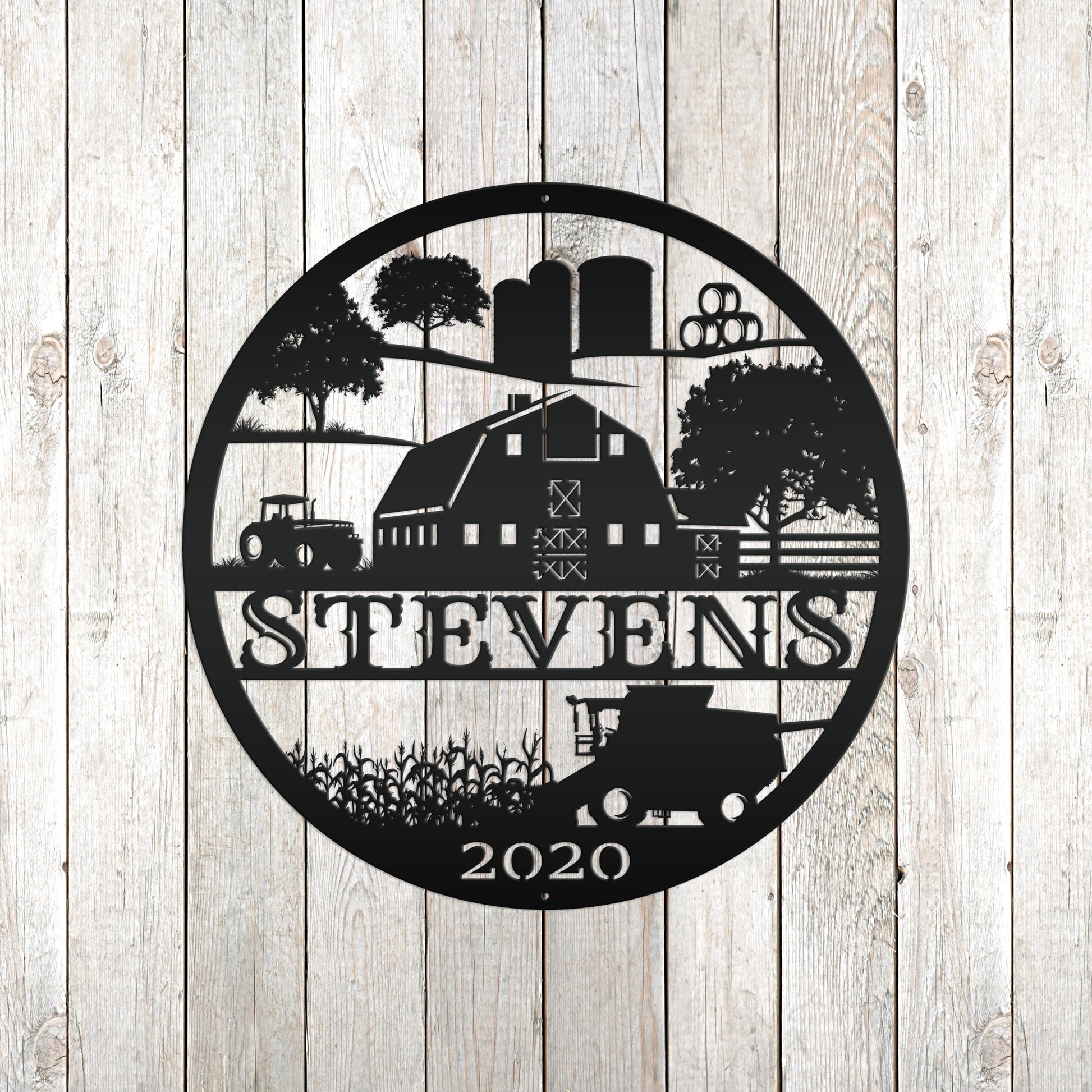 Joycorners Round Personalized Farm Scene Sign, Farm Wall Decor, Farmhouse Decor, Farm Wall Art, Gift for Farmer, Farm Lovers, Kids Farm Bedroom Decor LM0110