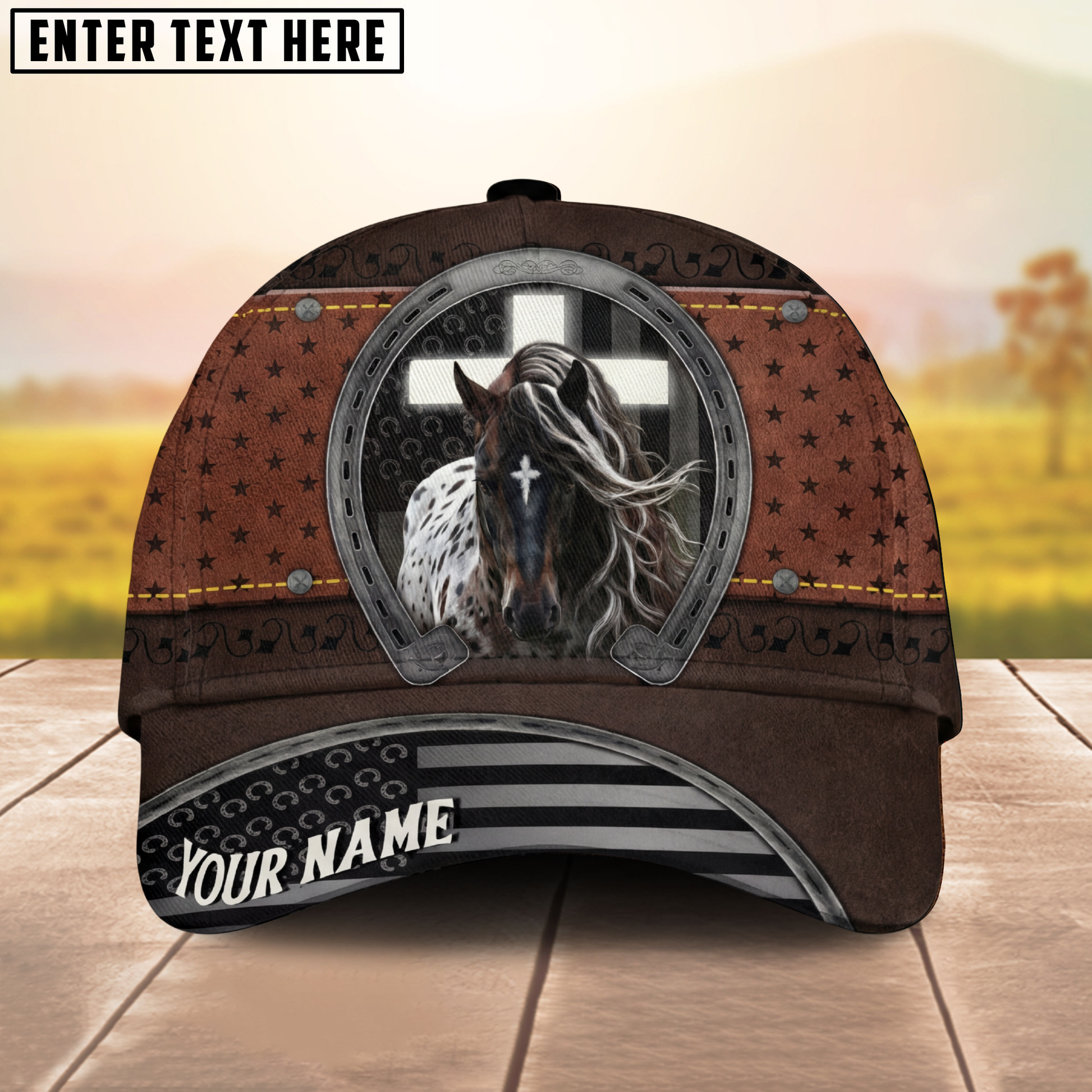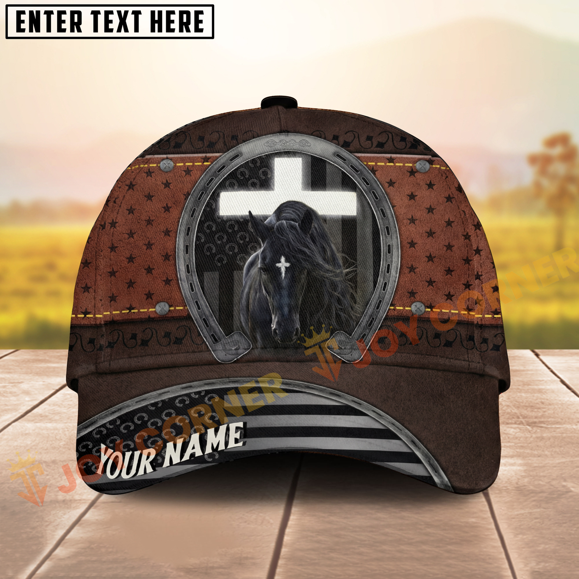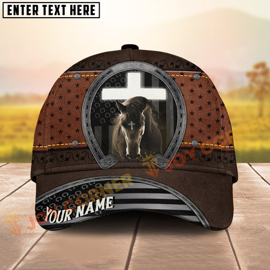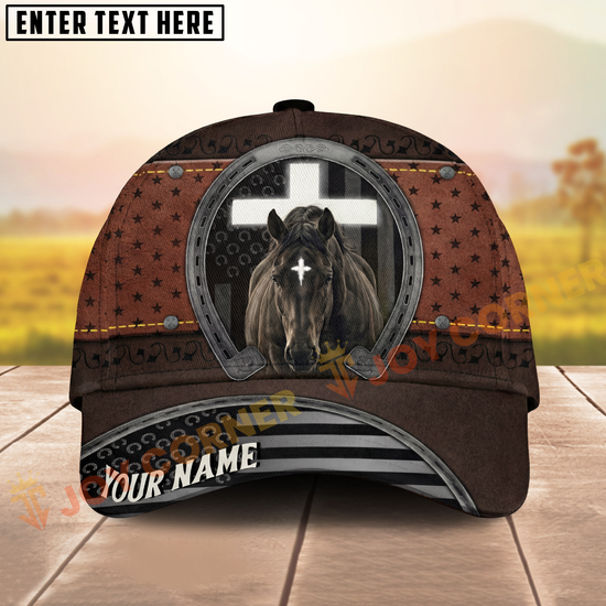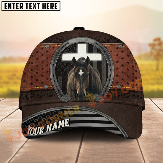 Joycorners Rustic Christian Horse & Cross Western Leather Texture Personalized Name Cap (8 Breeds)