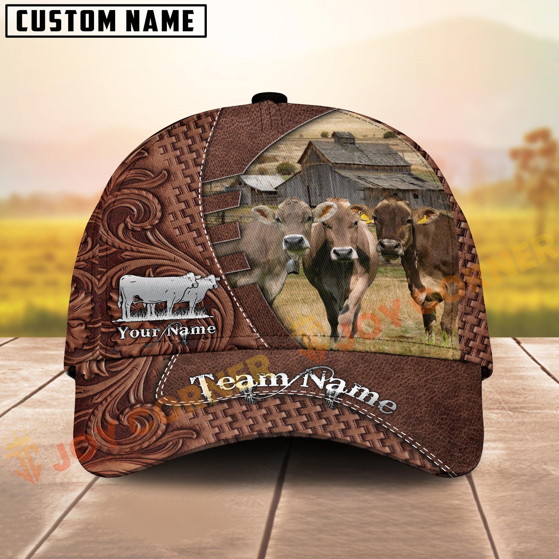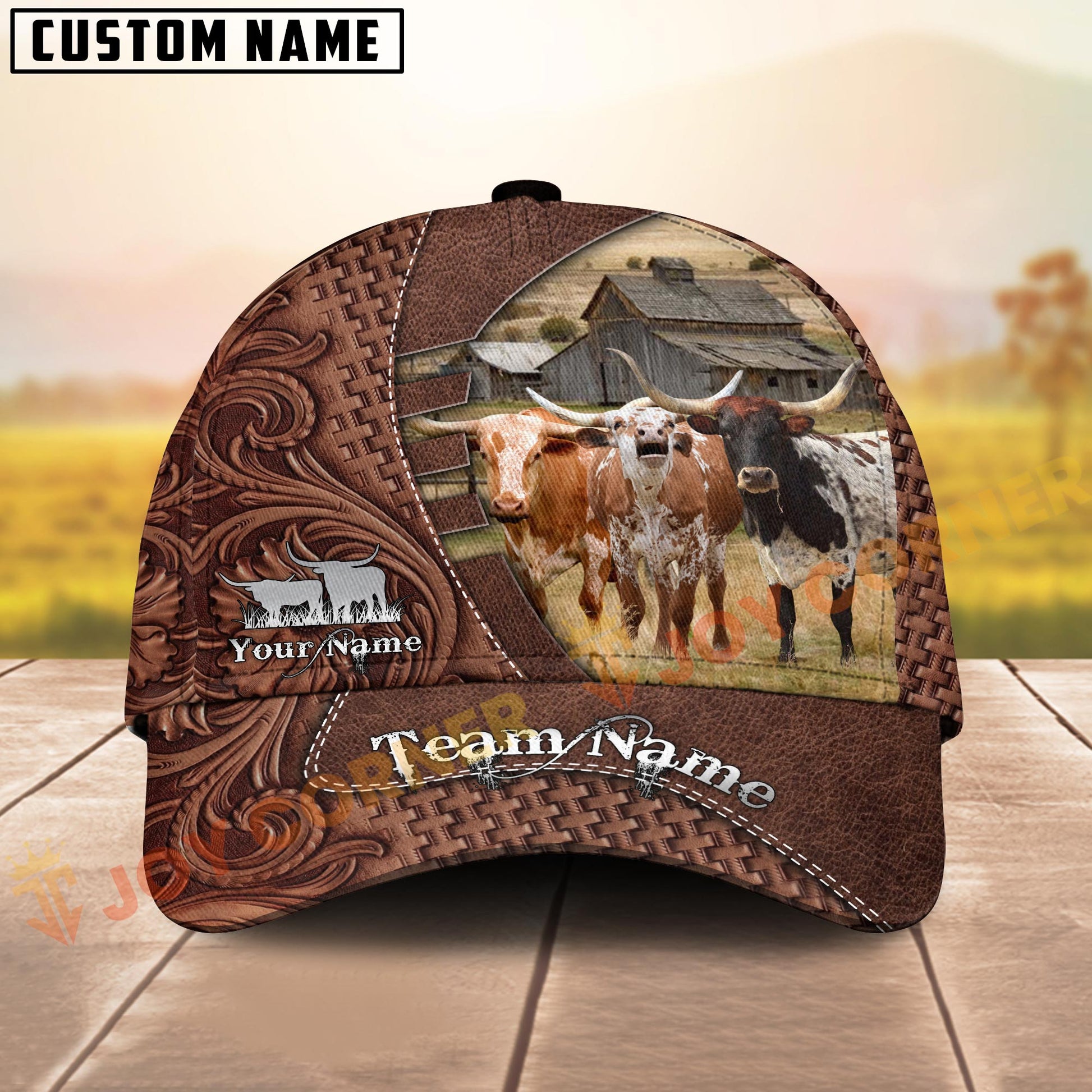 Joycorners Rustic Cow Western Tooled Pattern Cattle Rancher Gift Custom Name 3D Cap (10 Breeds)