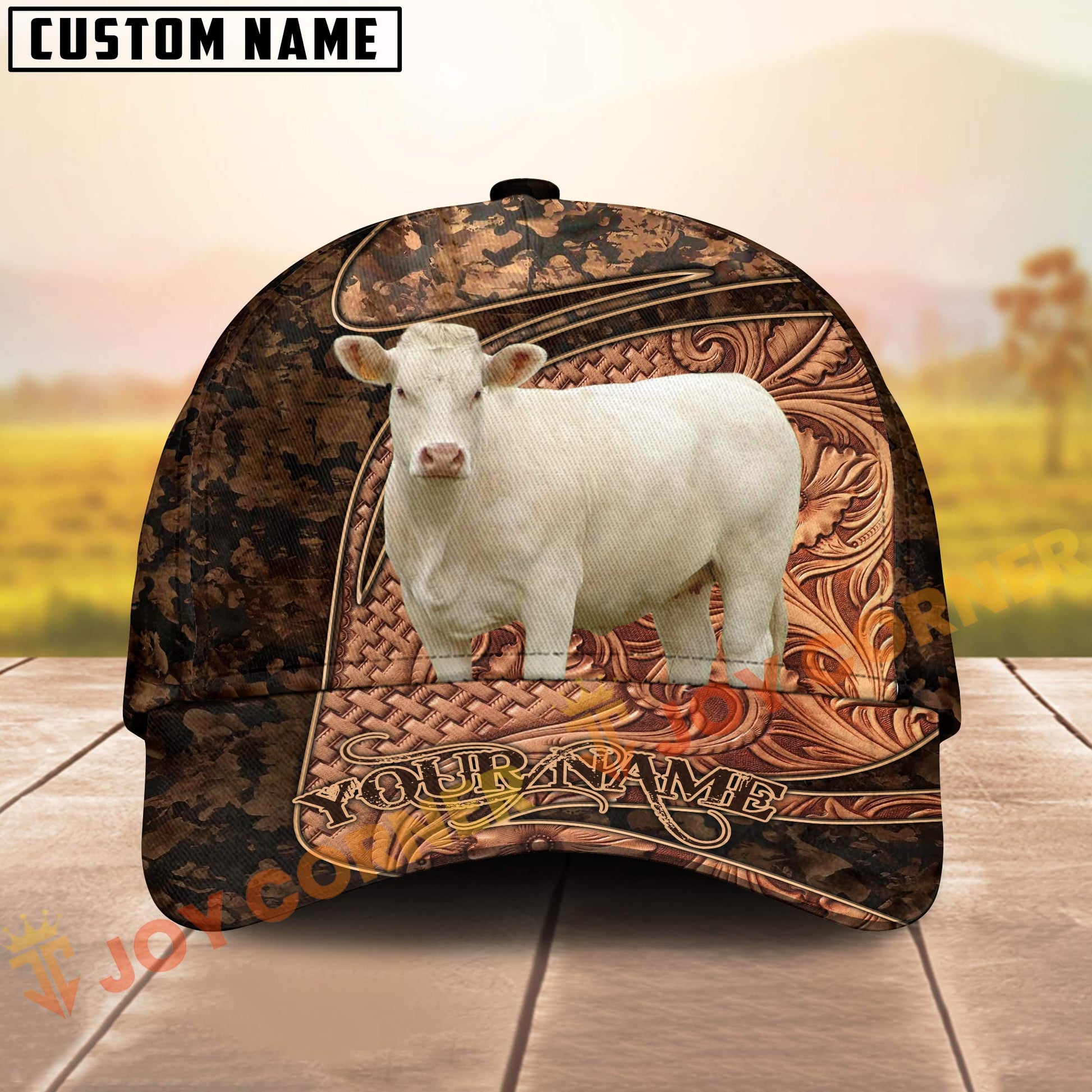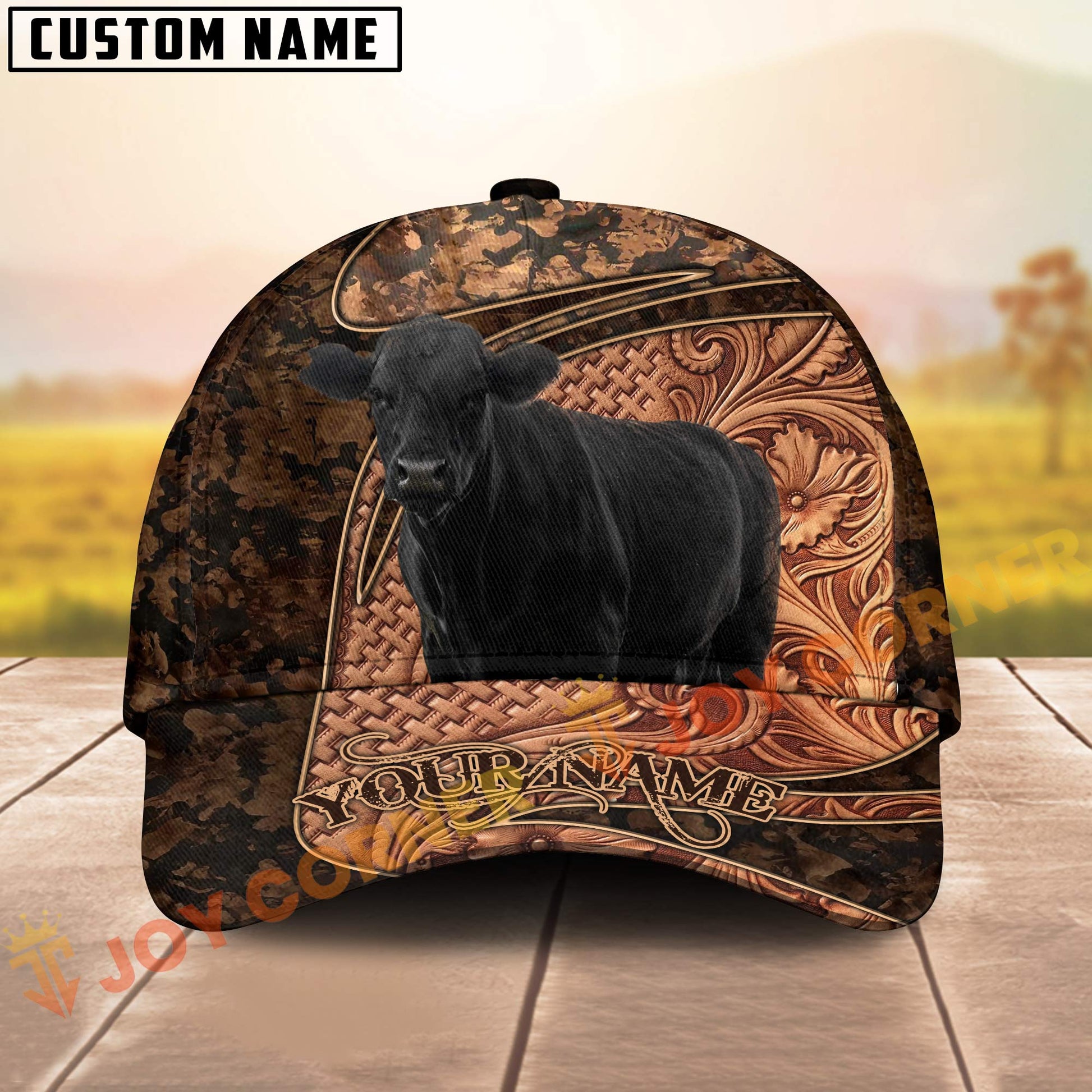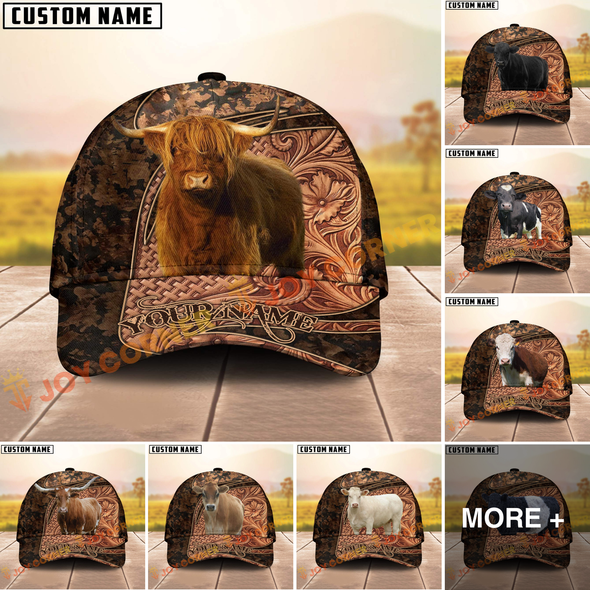 Joycorners Rustic Cow Western Tooled Pattern Custom Name 3D Cap (10 Breeds)