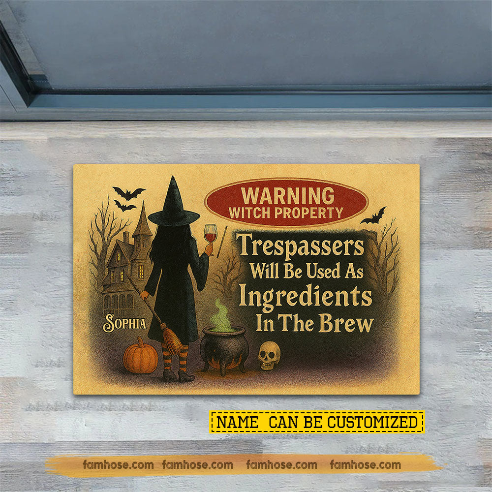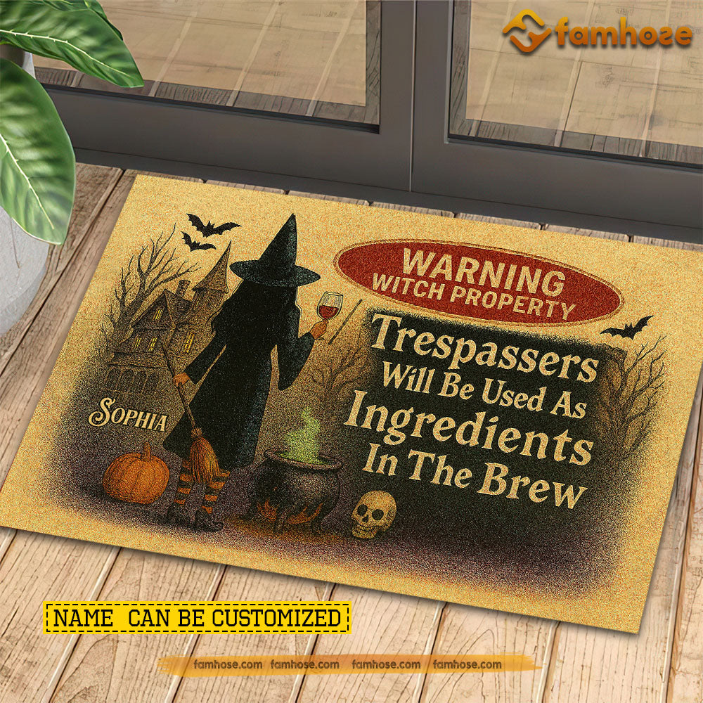 Joycorners Scared Personalized Halloween Witch Doormat, Warning Witch Property, Doormat For Home Decor Housewarming Gift, Welcome Mat Gift For Witch Lovers LM0210