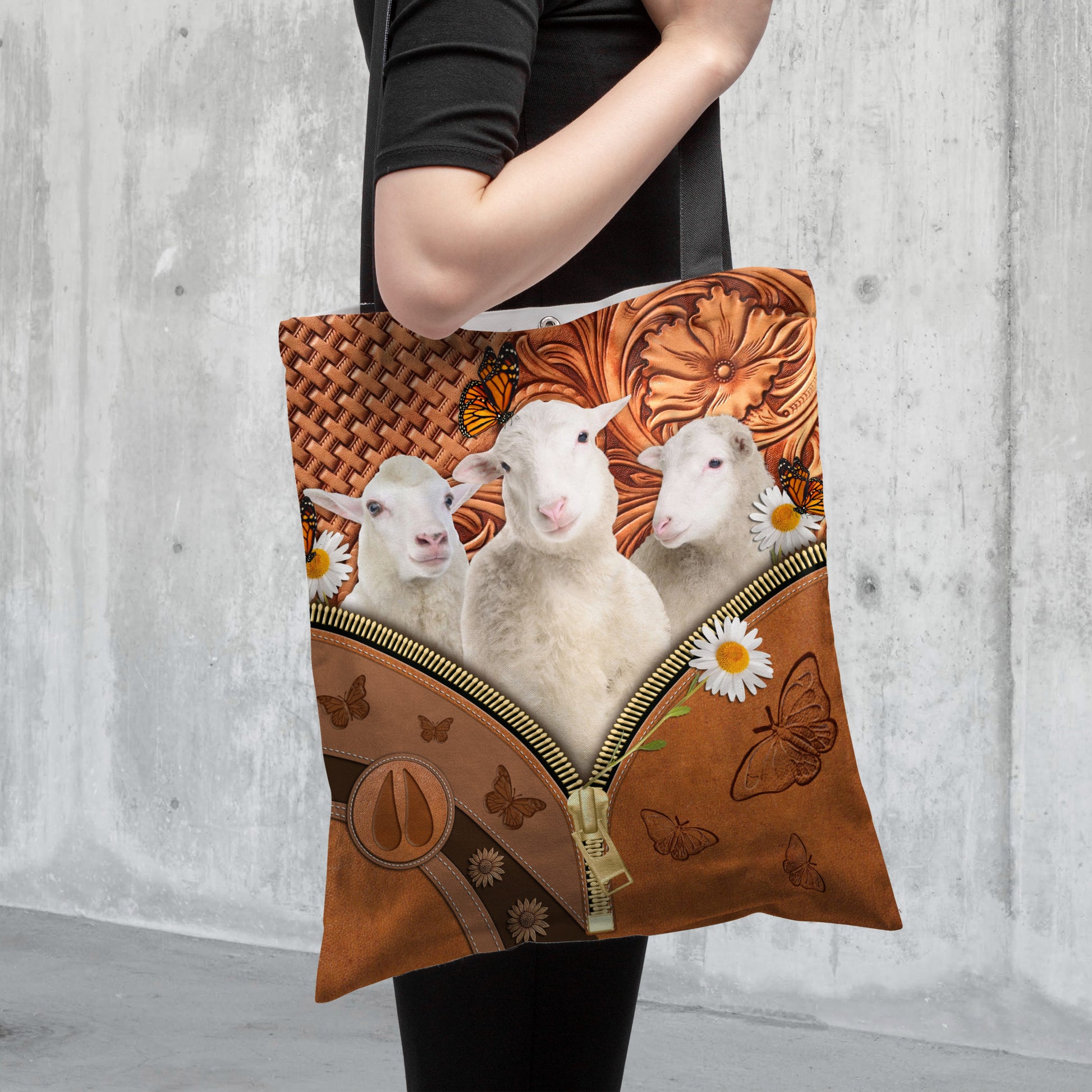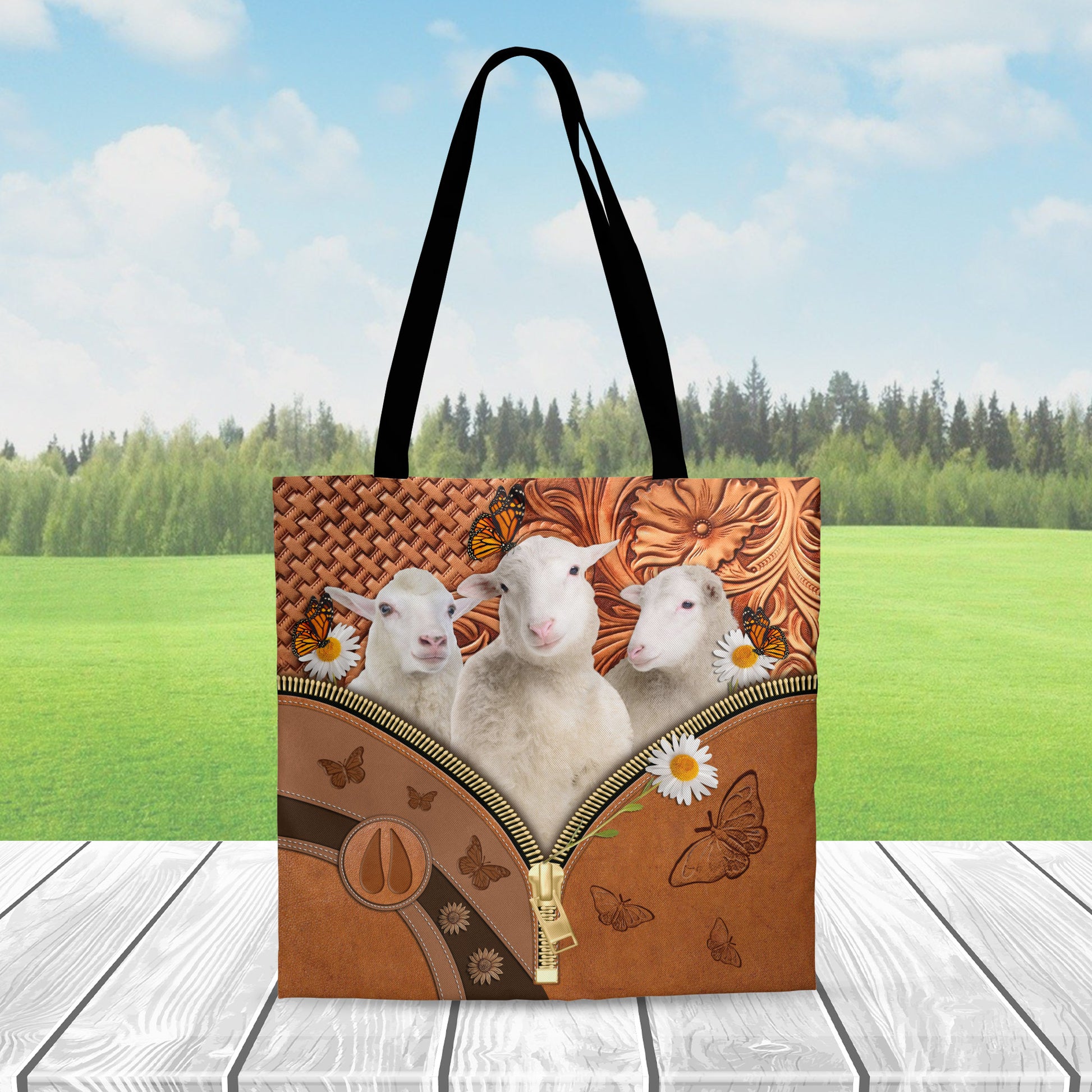 Joycorners Sheep Daisy Flower and Butterfly All Over Printed 3D Tote Bag