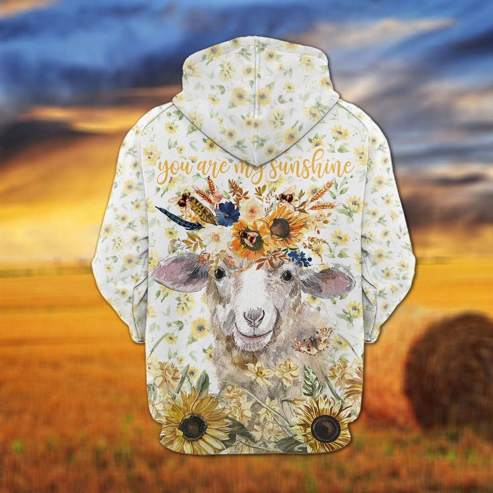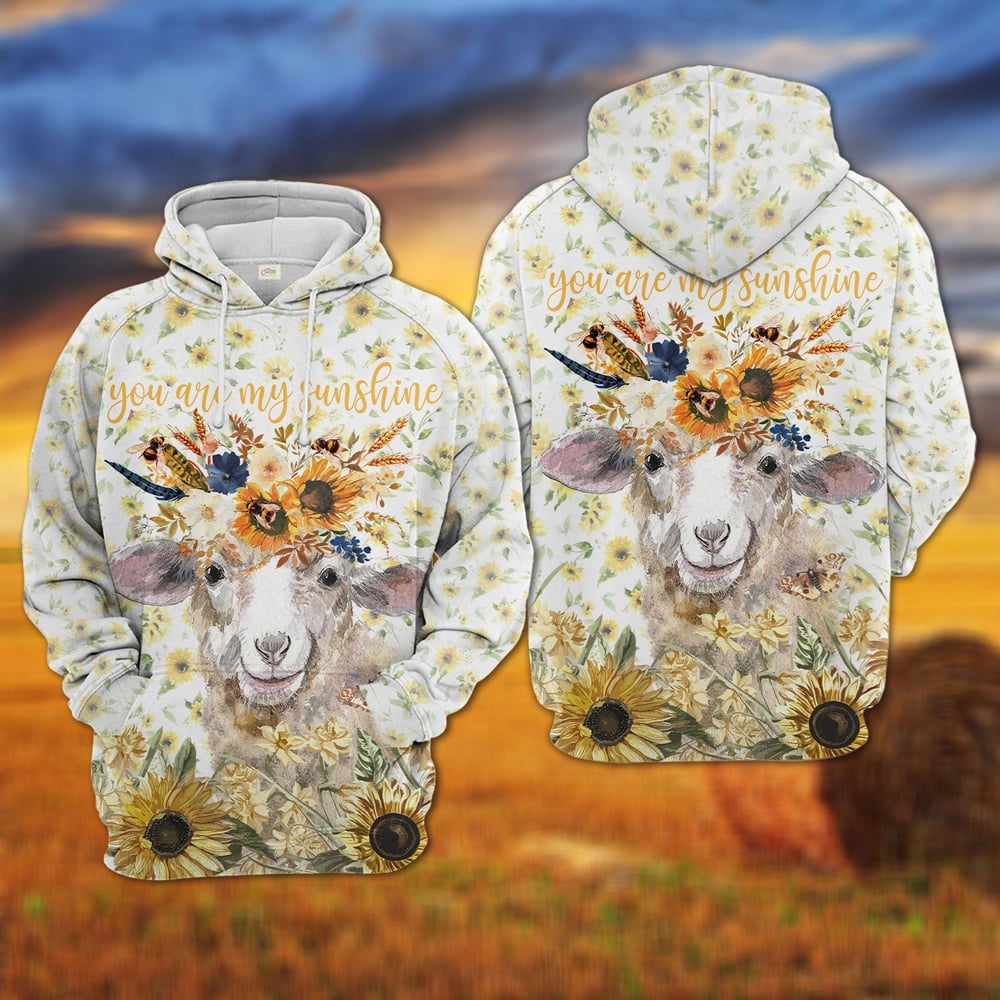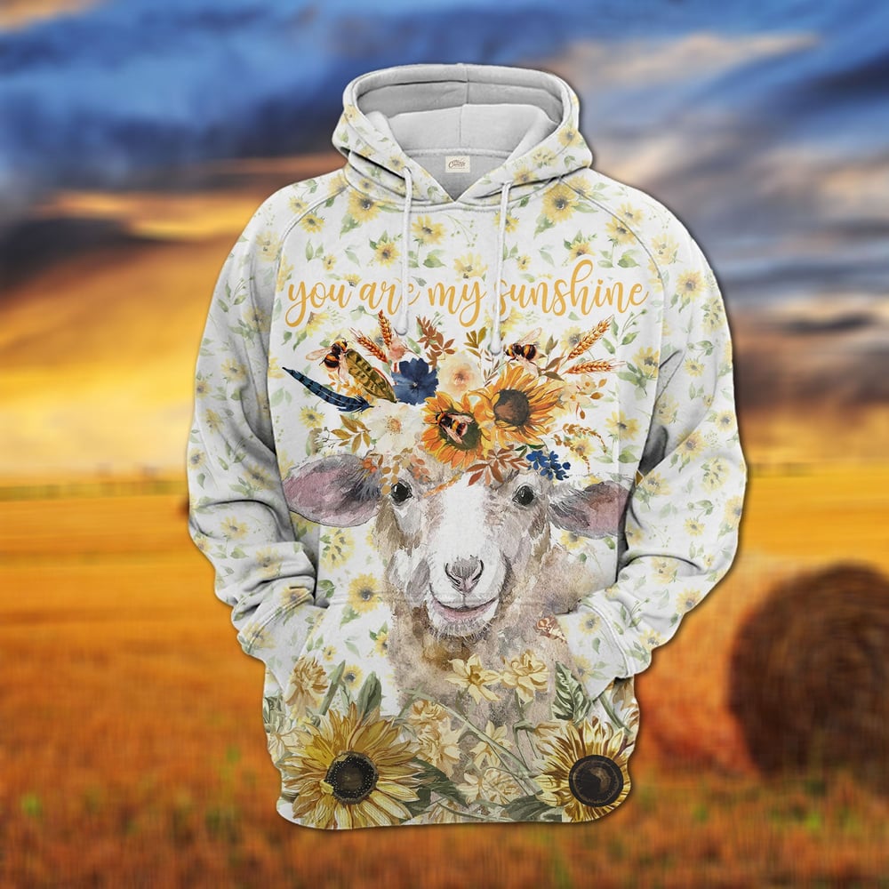 Joycorners Sheep Sunflower Floral Pattern Hoodie