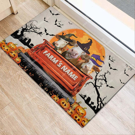 Joycorners Simmental Halloween Truck Custom Name Doormat