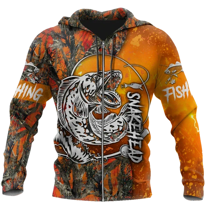 Joycorners SNAKEHEAD ORANGE CAMO Fishing 3D Hoodie