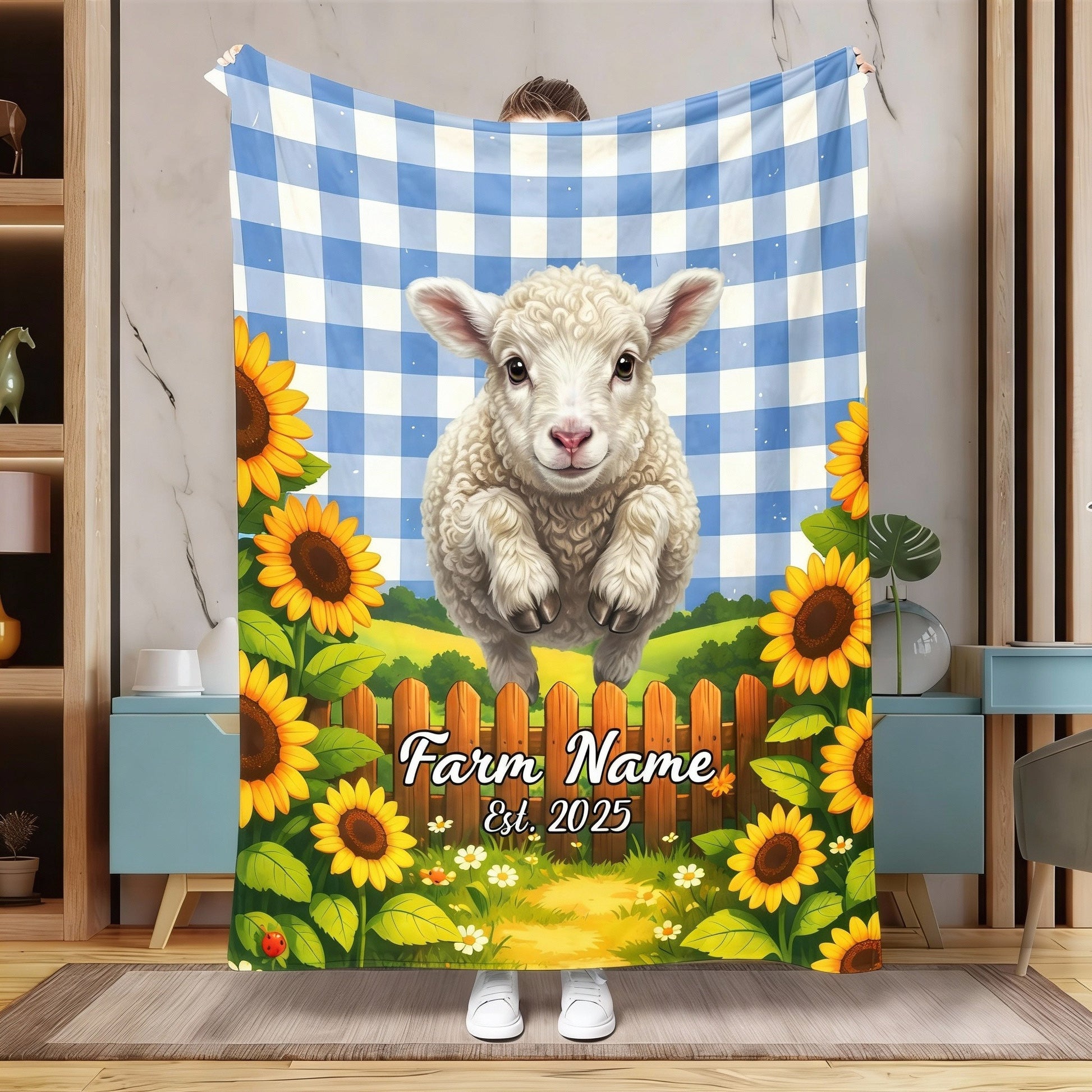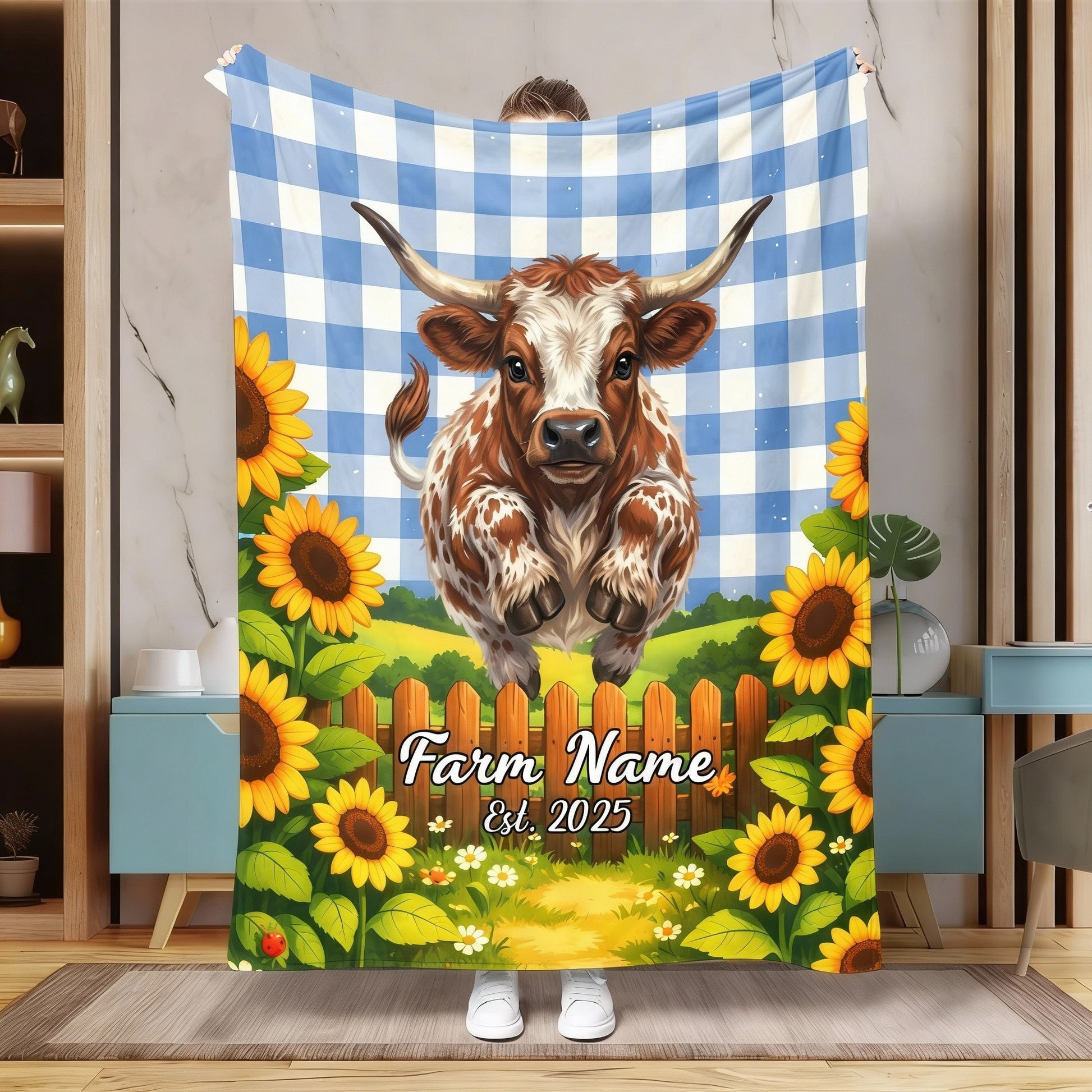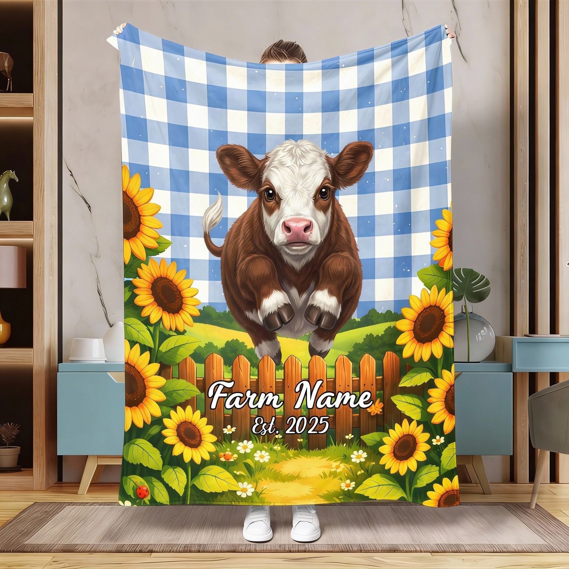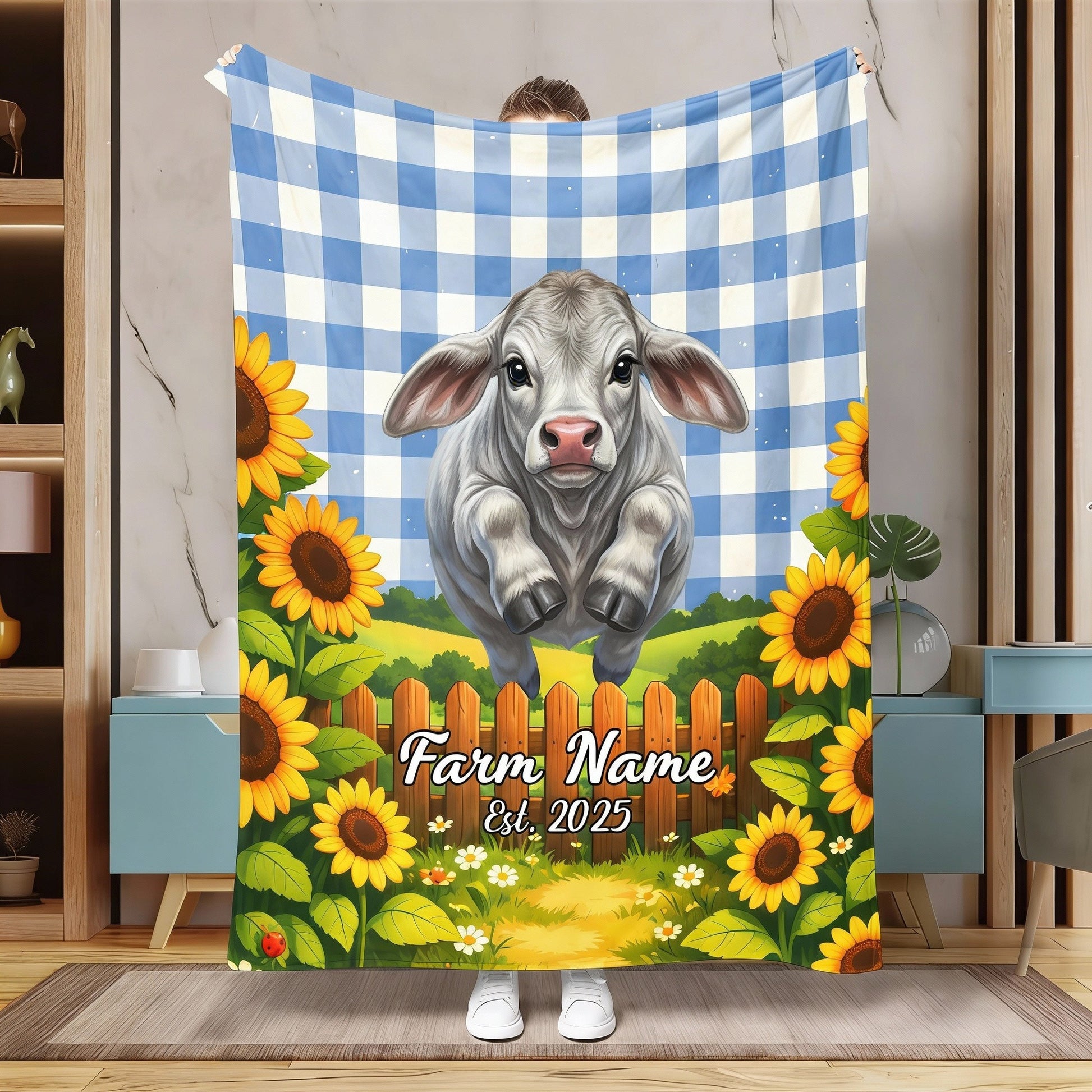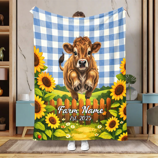 Joycorners Sunflower Baby Cow Personalized Farm Blanket (10 Cattle Breeds)