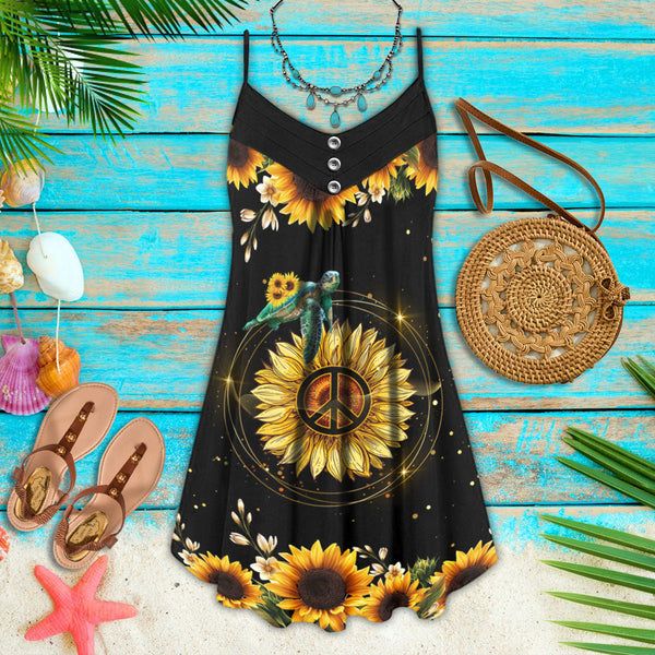 Joycorners Sunflower Turtle All Printed 3D Spaghetti Strap Summer Dress