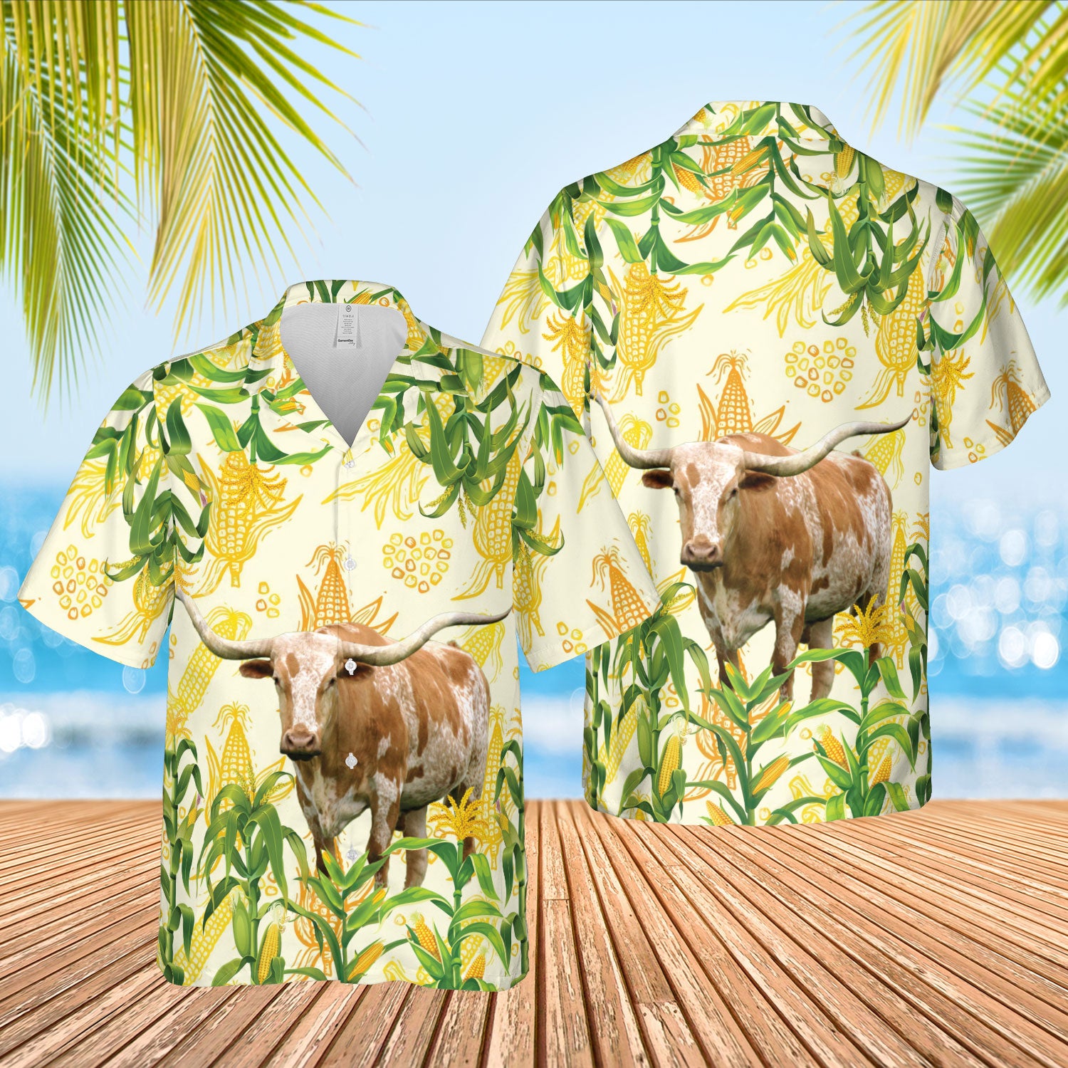 Joycorners Corn Farm Texas Longhorn All Over Printed 3D Hawaiian Shirt