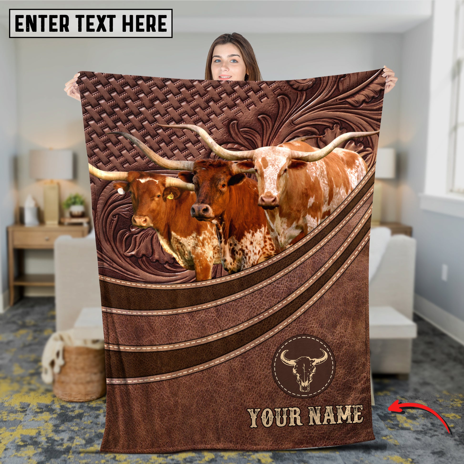 Joycorners Texas Longhorn Brown Carving Leather Pattern 3D Blanket