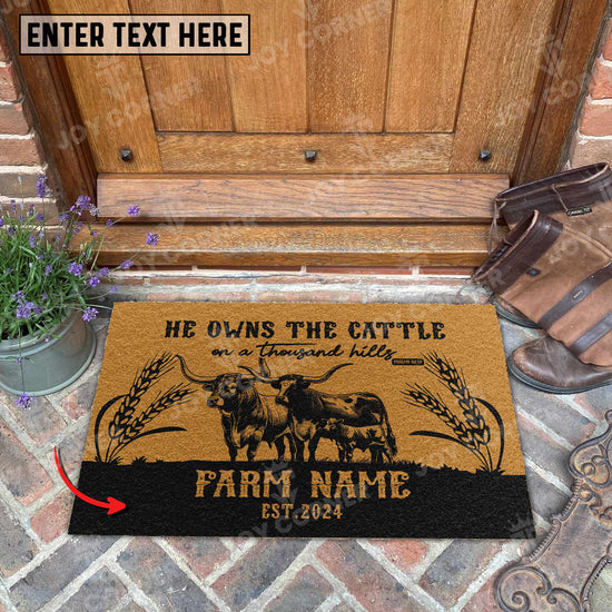 Joycorners Texas Longhorn Christian Western Psalm Custom Farm Name Custom Year Coir Doormat