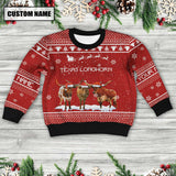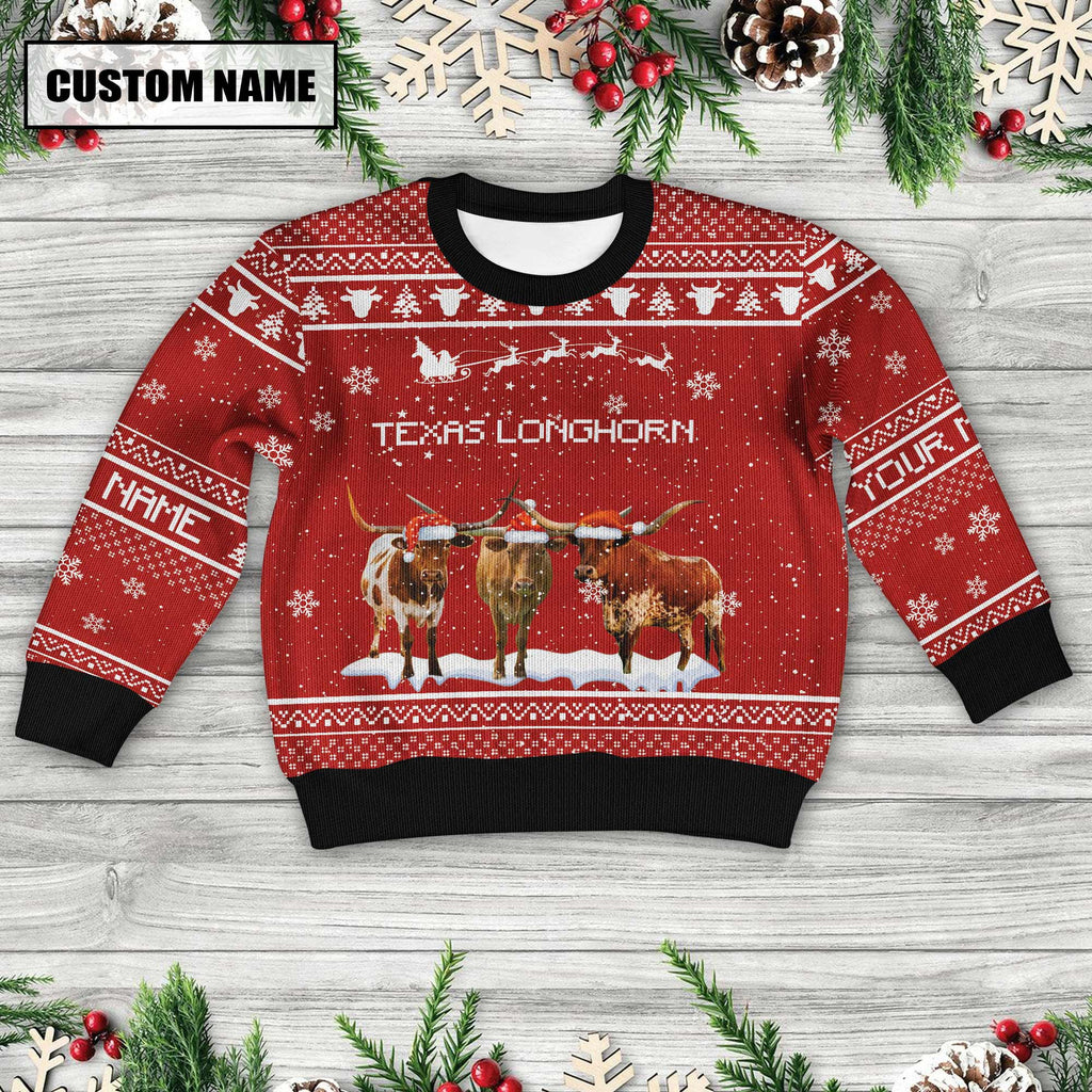 Joycorners Texas Longhorn Custom Name Happy Xmas Sweater For Kids