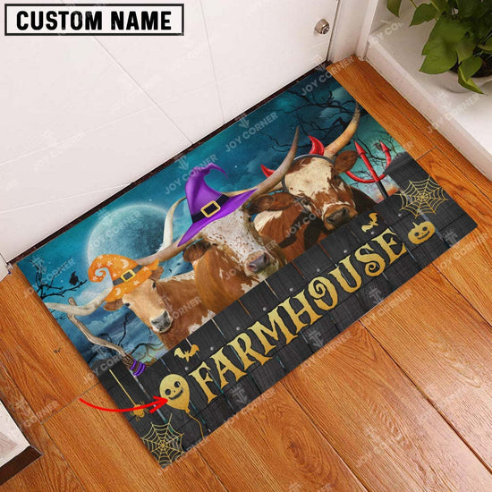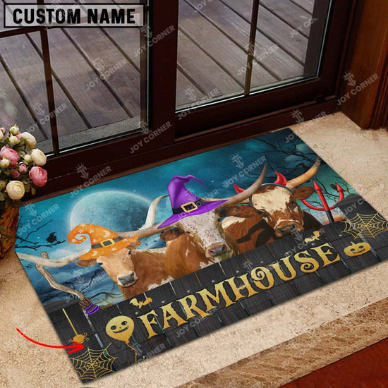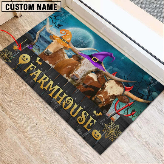Joycorners Texas Longhorn Cute Halloween Custom Name Doormat