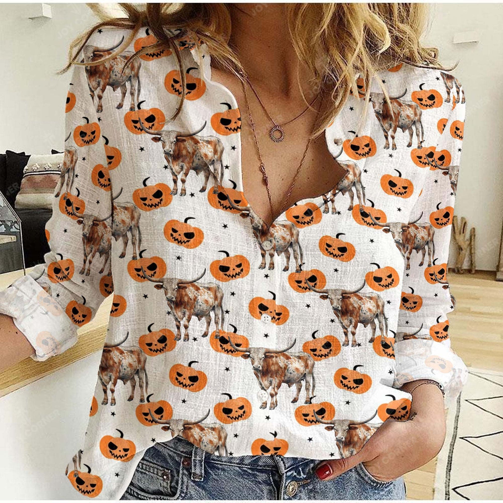 Joycorners Texas Longhorn Halloween Pattern Casual Shirt