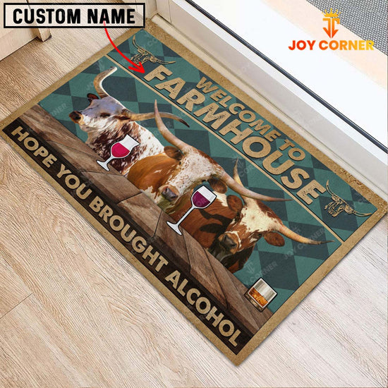 Joycorners Texas Longhorn Hope You Bought Alcohol Custom Name Doormat