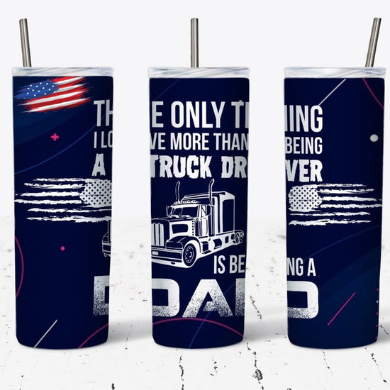 Joycorners The Only Thing I Love More Than Being A Trucker Is Being A Dad Skinny Tumbler