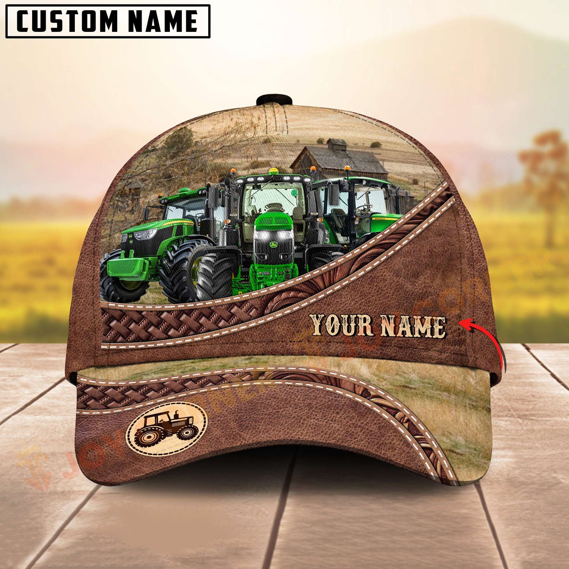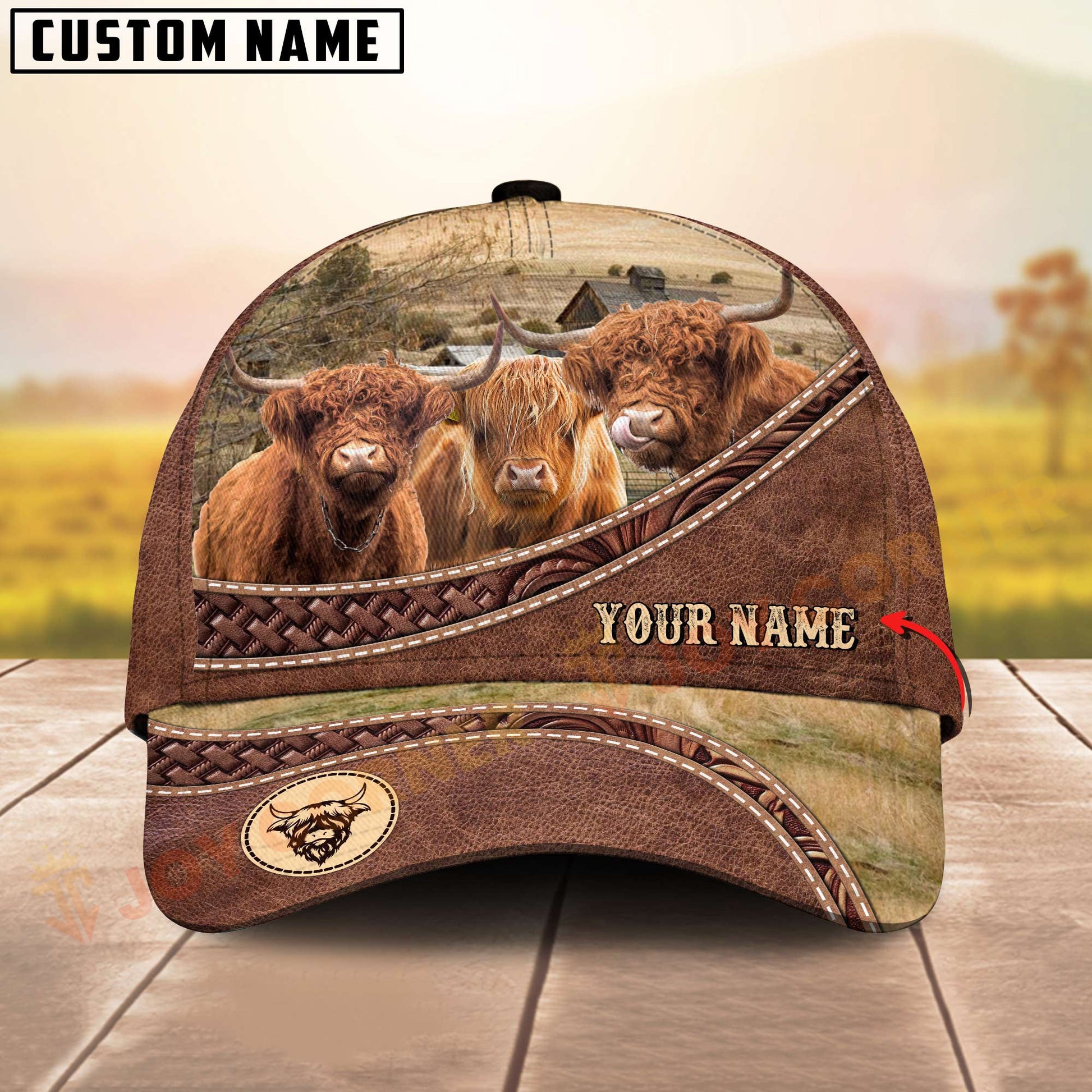Joycorners Three Cow Tooled Leather Farm Landscape Pattern Personalized Name 3D Classic Cap (9 Breeds)