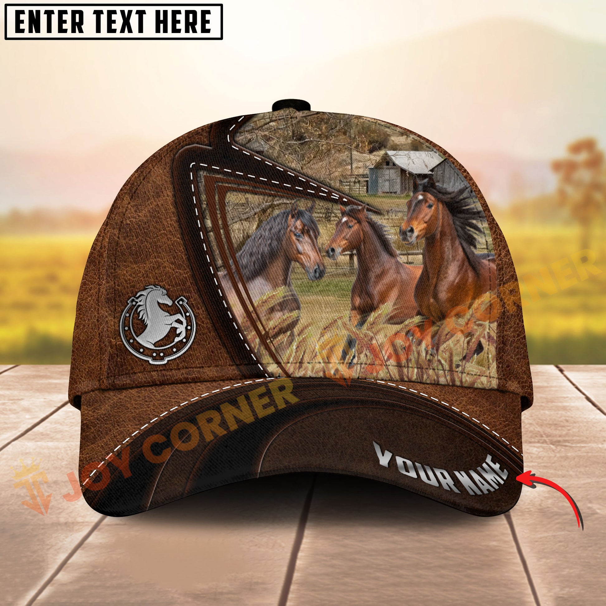 Joycorners Three Morgan Horse Leather Farm Landscape Pattern Personalized Name 3D Classic Cap