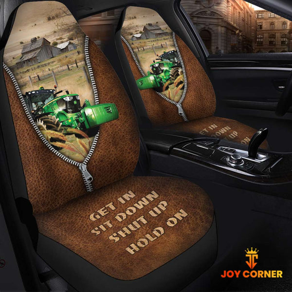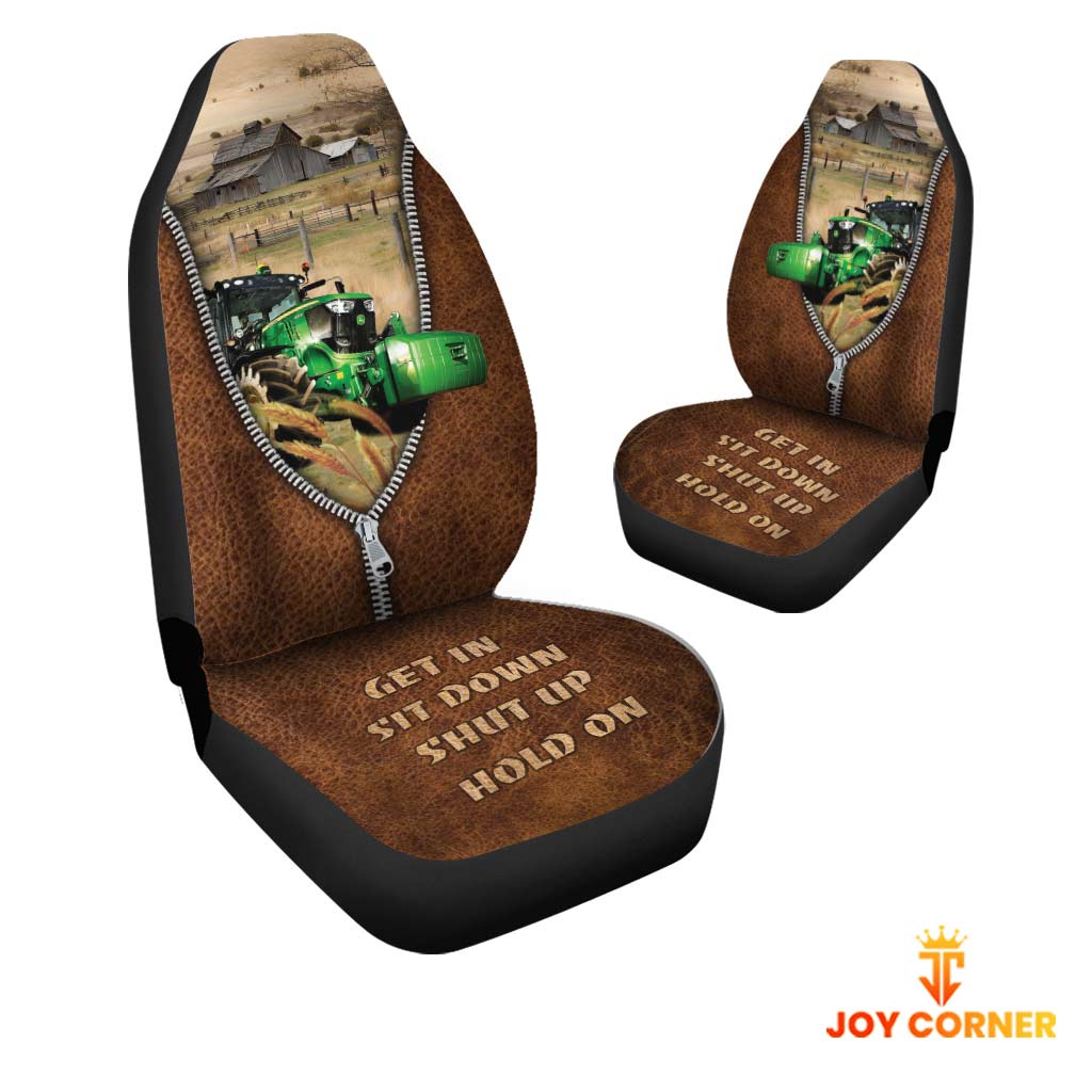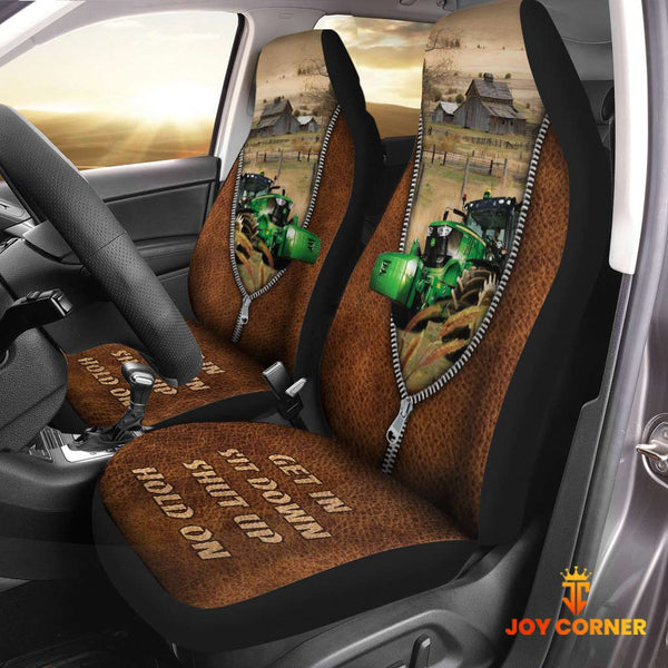 Joycorners Tractor Zipper Leather Pattern Car Seat Covers Universal Fit (2Pcs)