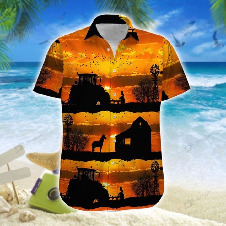Joycorners Tractor Sunset Farm All Printed 3D Hawaiian Shirt