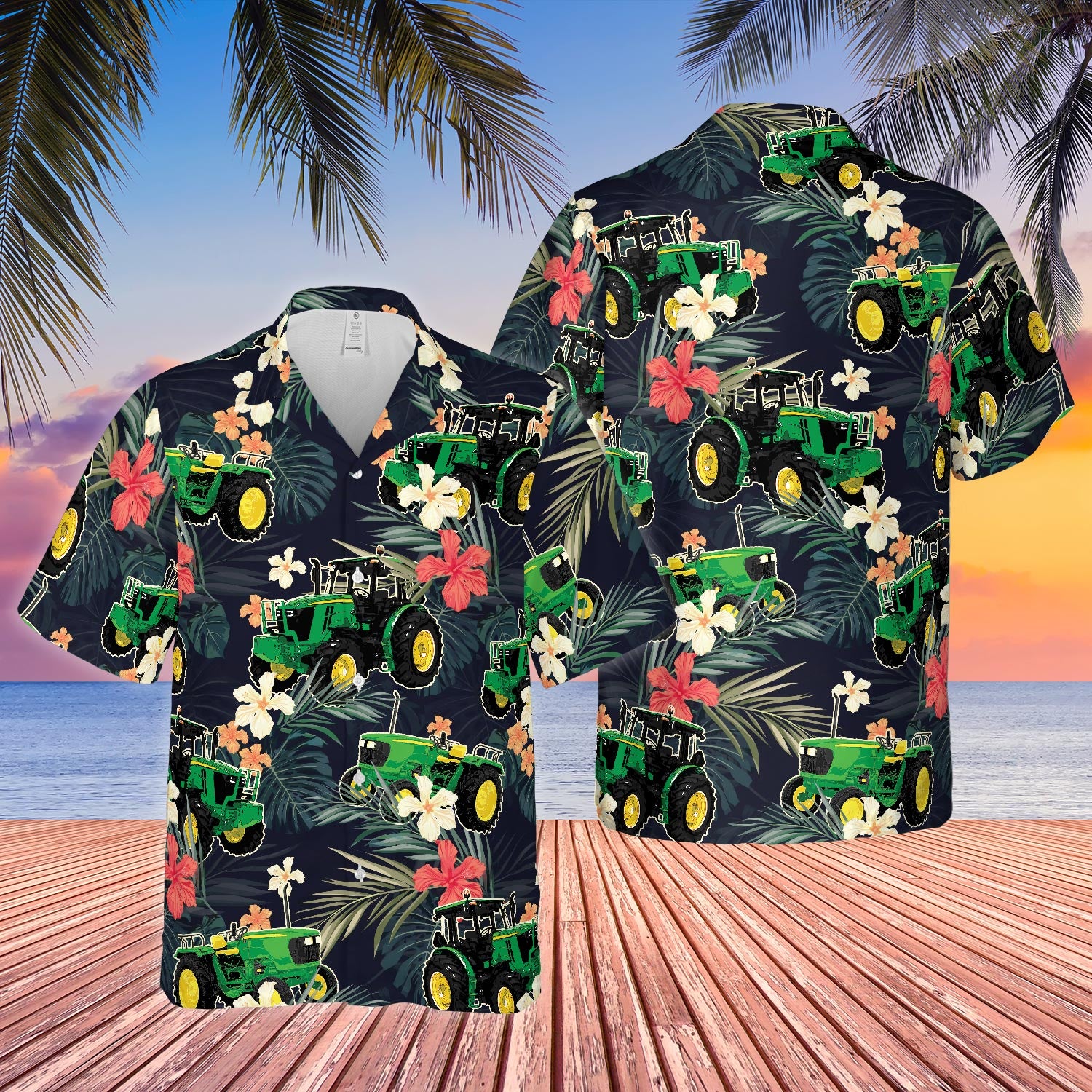 Joycorners Tractors Tropical Plants Dark Blue All Over Printed 3D Hawaiian Shirt