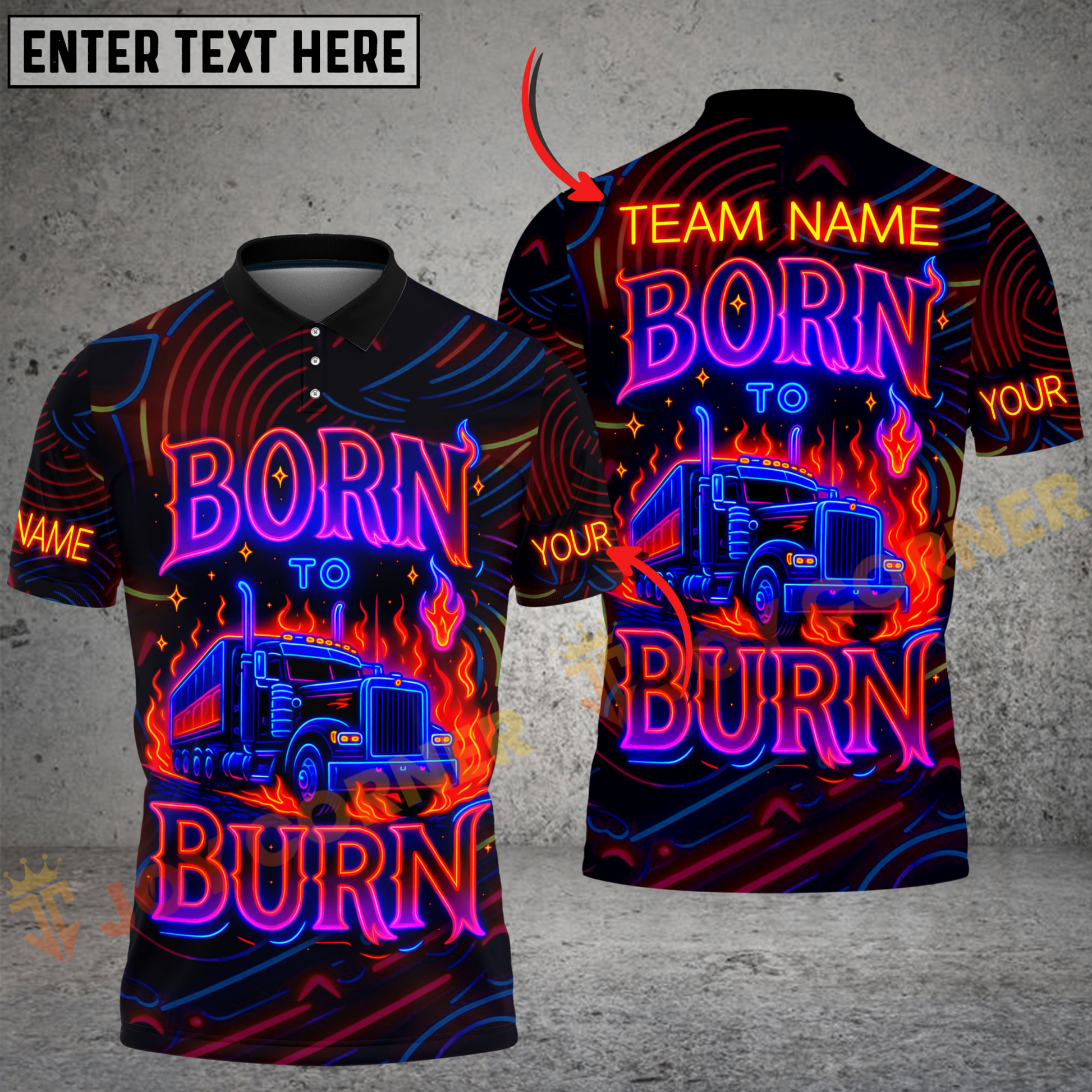 Joycorners Truck Born to Burn Neon Flames Personalized Name 3D Unisex Shirt