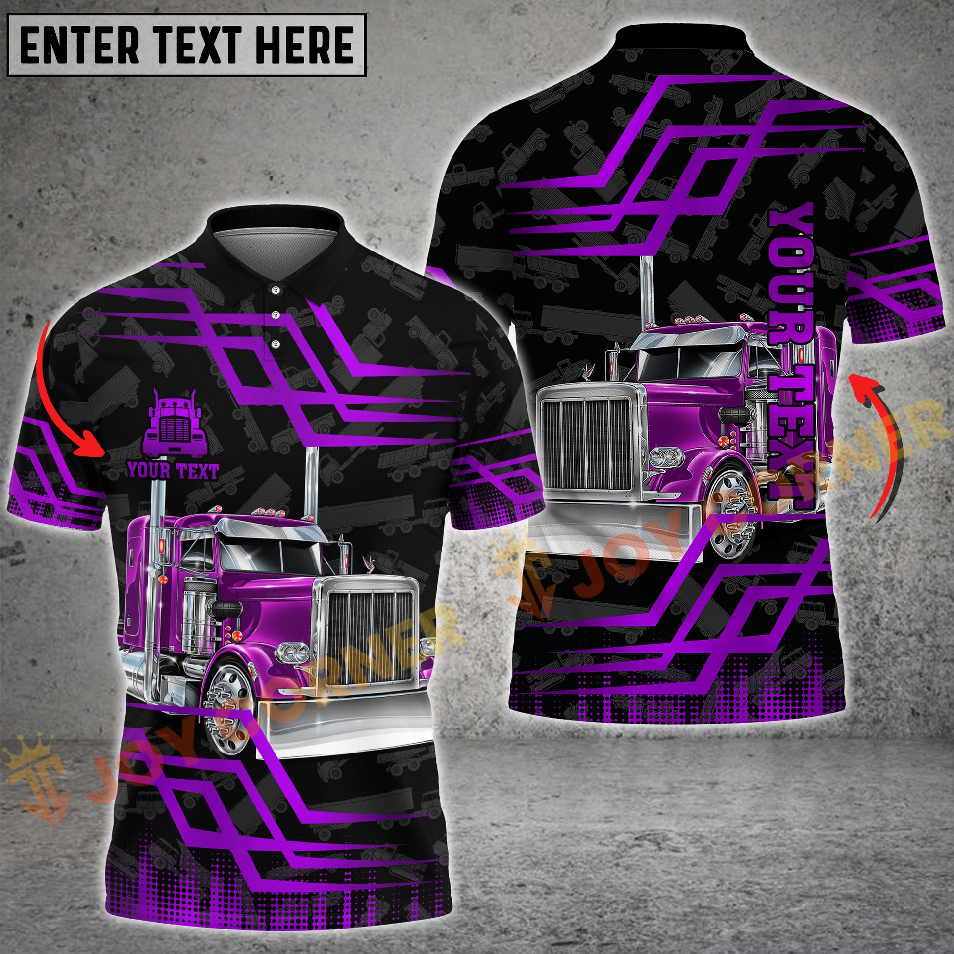 Joycorners Truck Gold Chrome Semi Stripes Grid Pattern Shirt Multi Options Personalized Name 3D Shirt (4 Colors)
