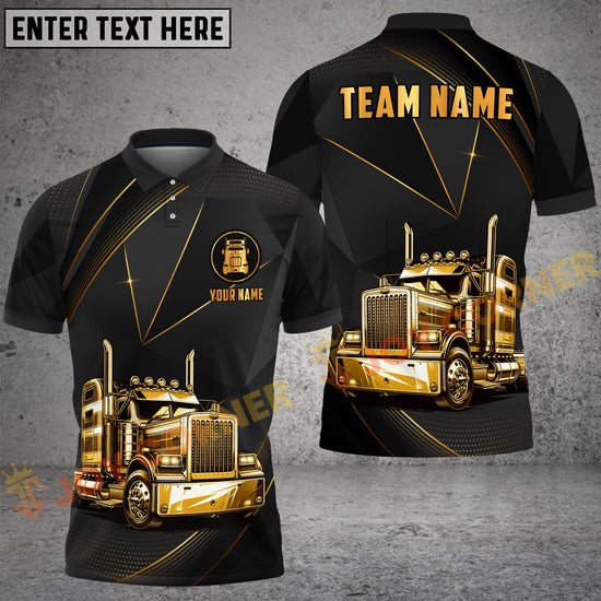 Joycorners Truck Gold Semi Trailer Geometric Lines Shirt Multi Options Personalized Name, Team Name 3D Shirt (4 Colors)