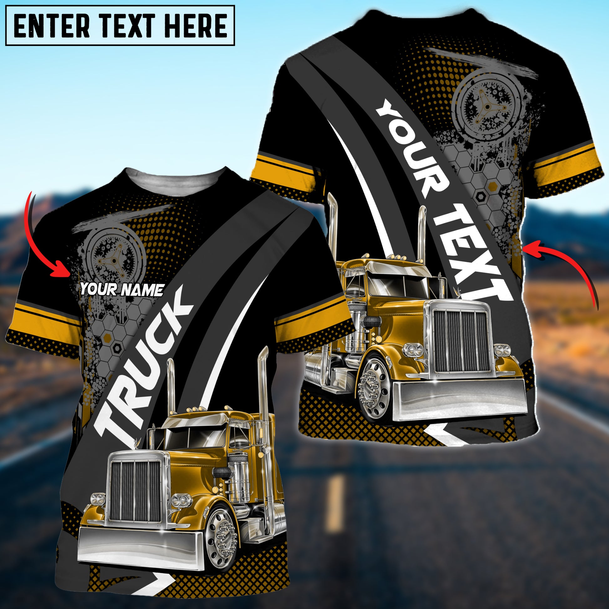 Joycorners Truck Yellow Personalized Name Shirt For Truck Driver, Trucking Gift 3D Shirt