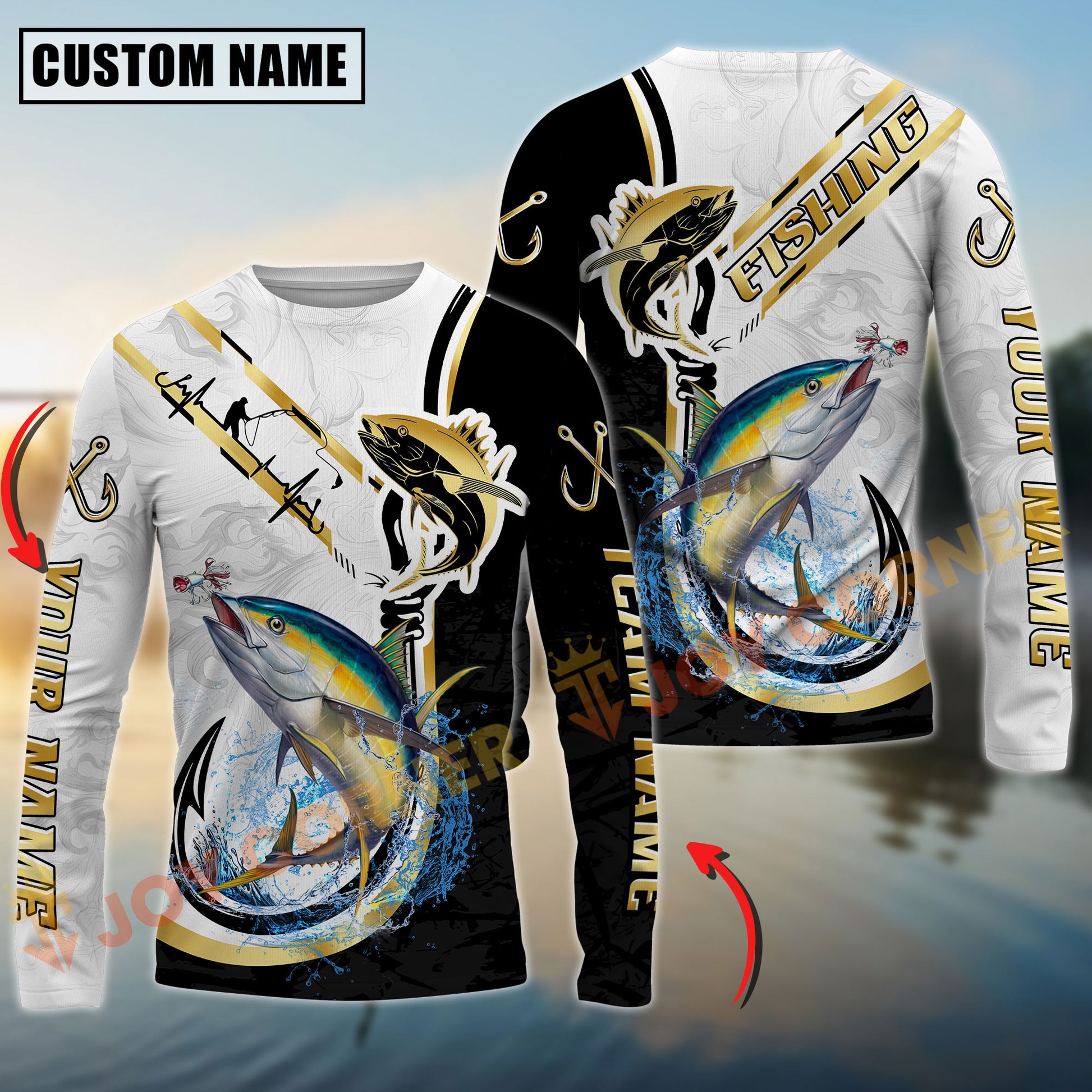 Joycorners Tuna Fishing Black & Gold Custom Name, Team Name 3D Shirt