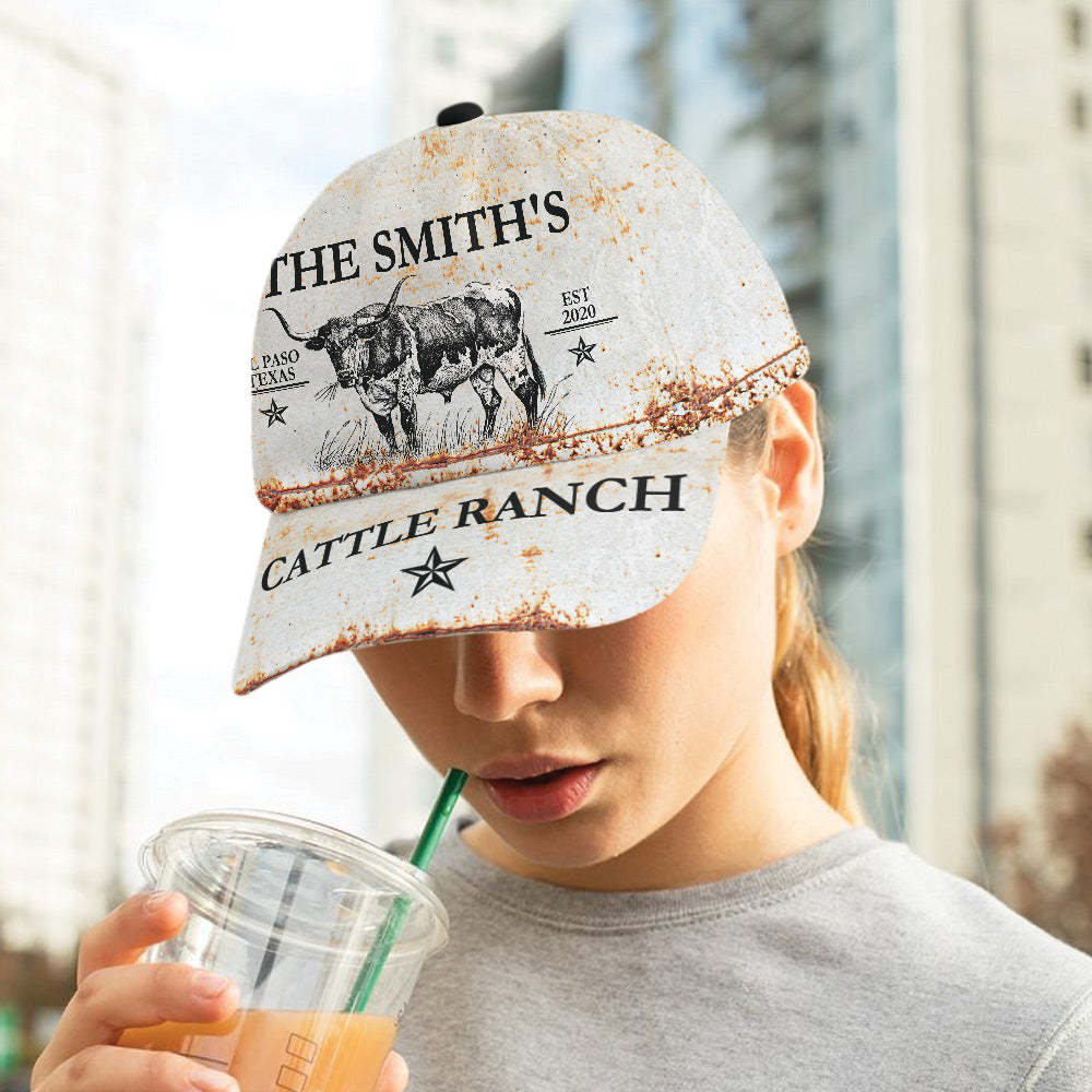Joycorners Custom Text TX- Longhorn Cattle Ranch All Printed 3D Cap