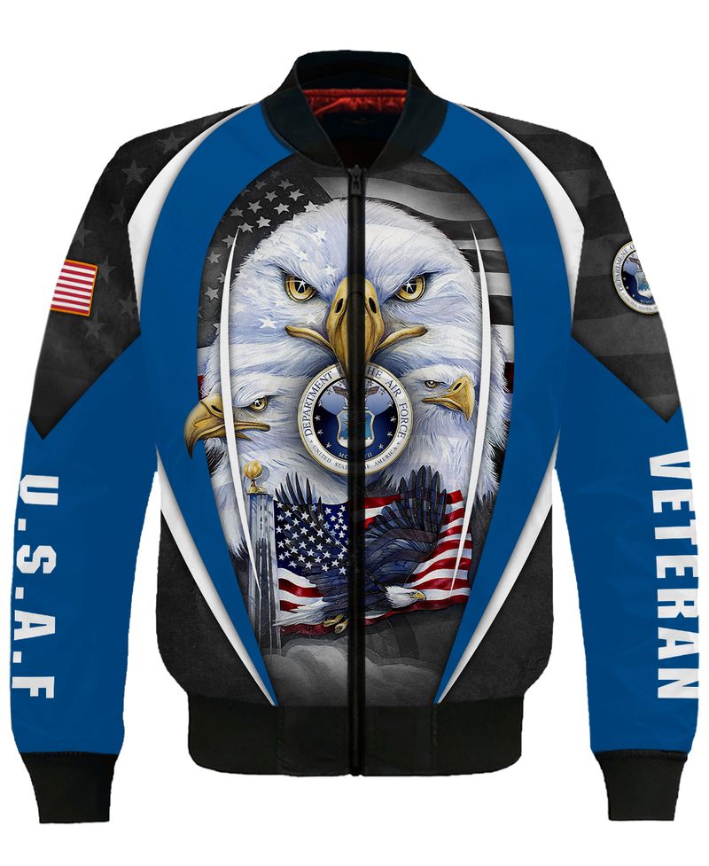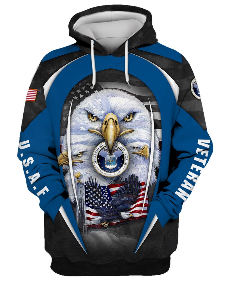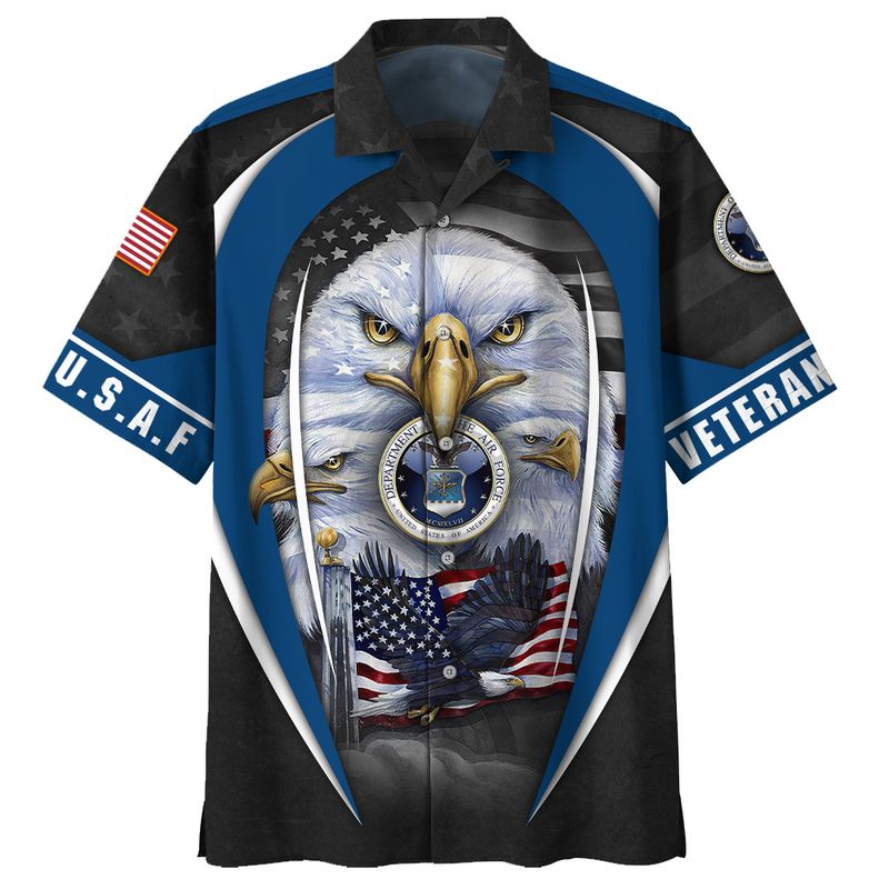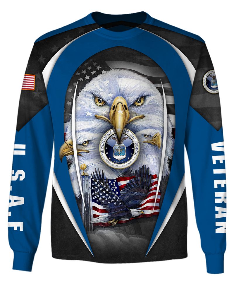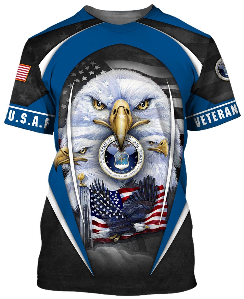 Joycorners U.S.A.F Veteran Eagles U.S Flag Blue 3D All Over Printed Shirts