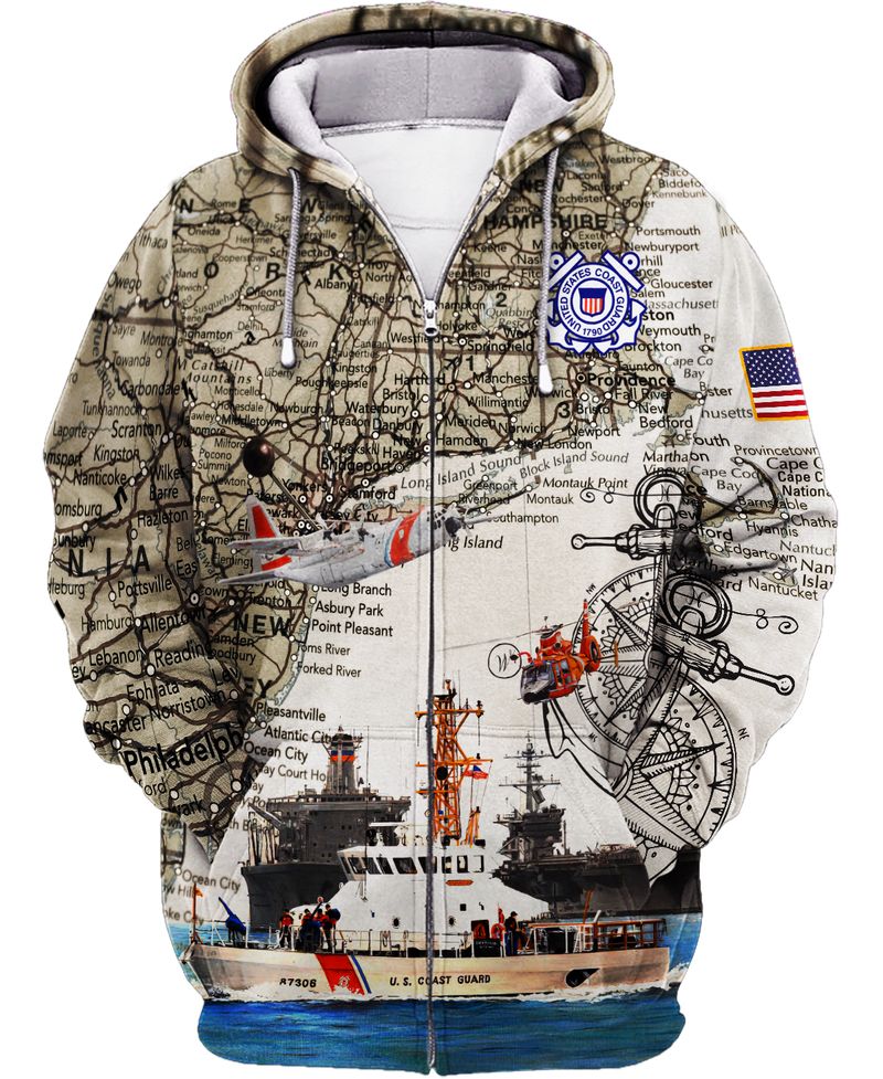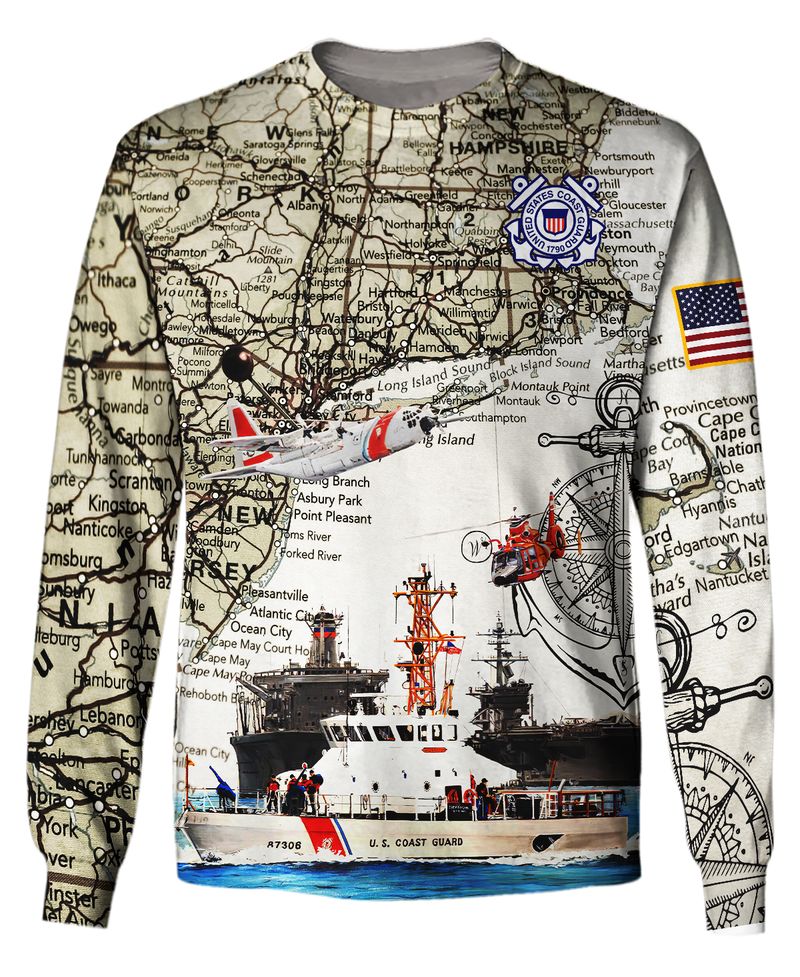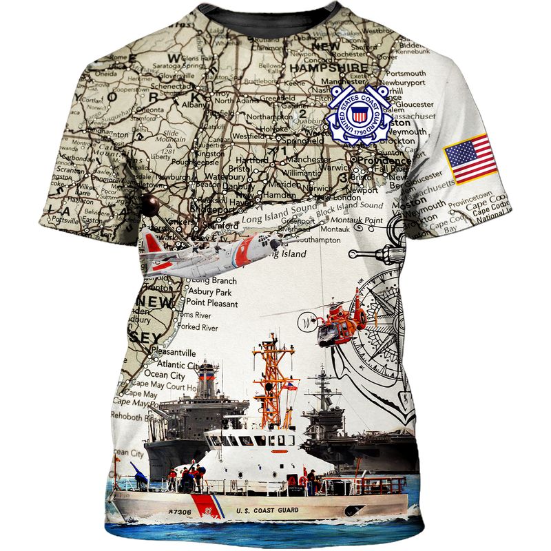 Joycorners U.S Coast Guard Ship And Map All Over Printed 3D Shirts