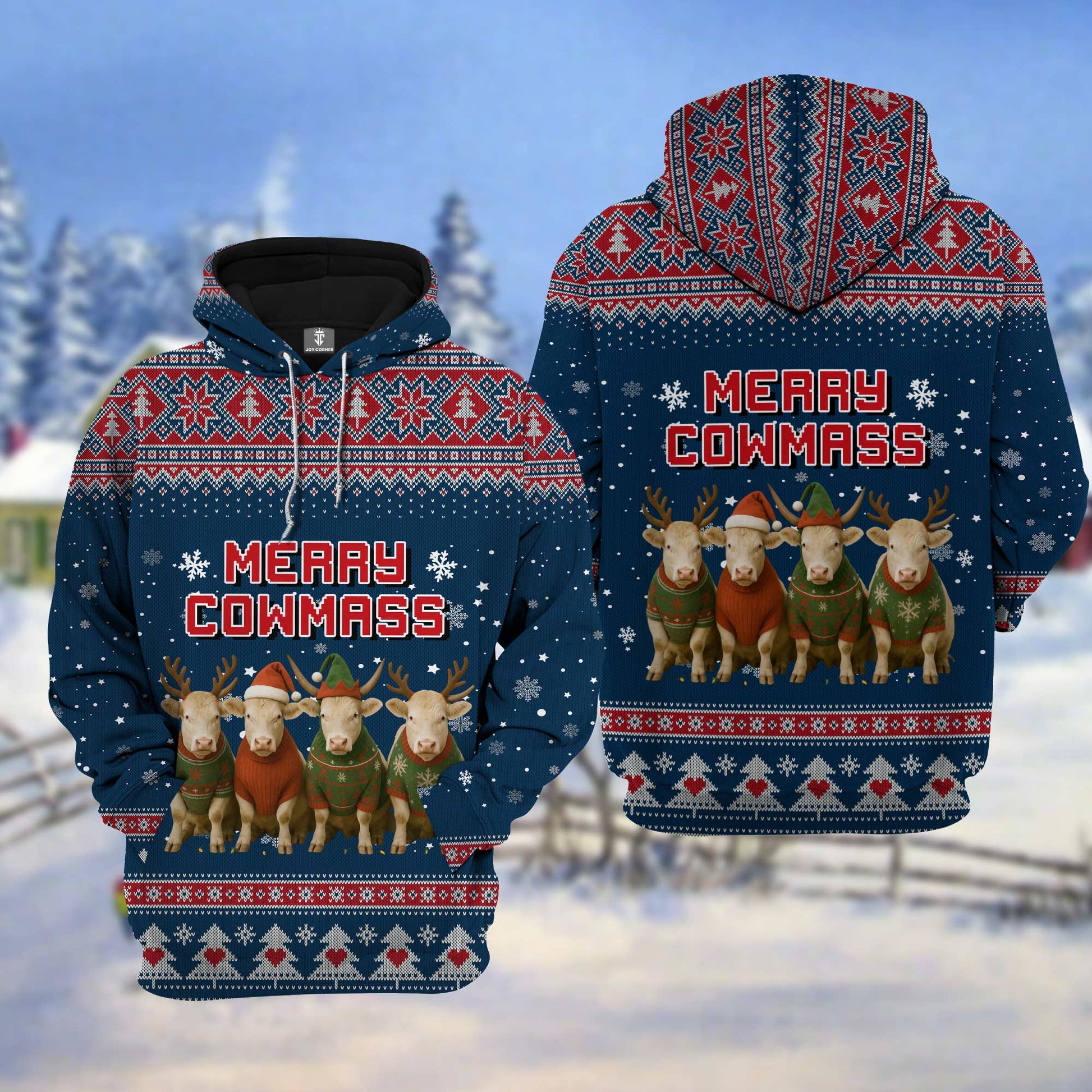 Joycorners Ugly Christmas Sweater Merry Christmas Cute Charolais Cow Overall 3D Hoodie