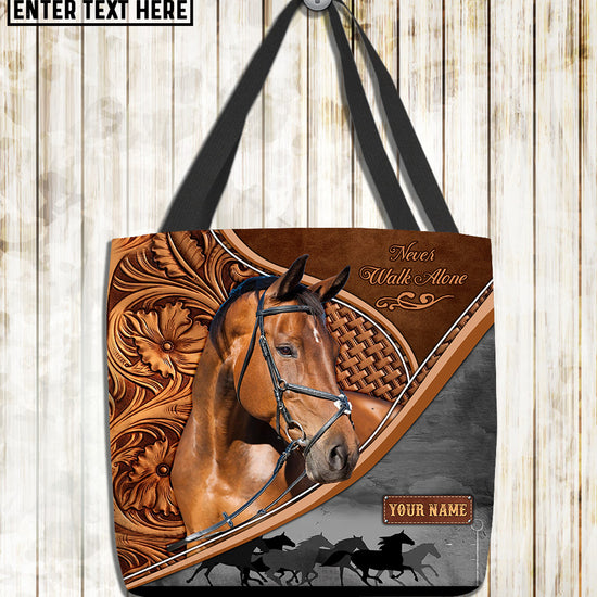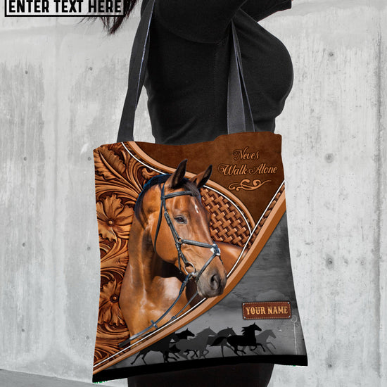 Joycorners Warmblood Horse Never Walk Alone Custom Name 3D Tote Bag