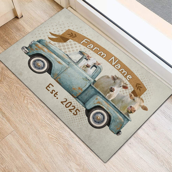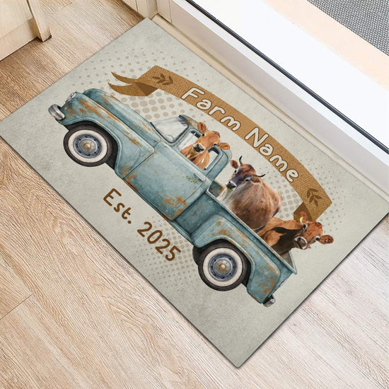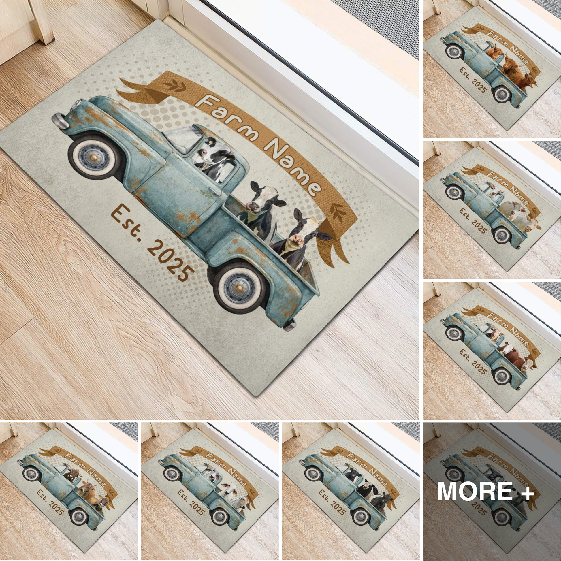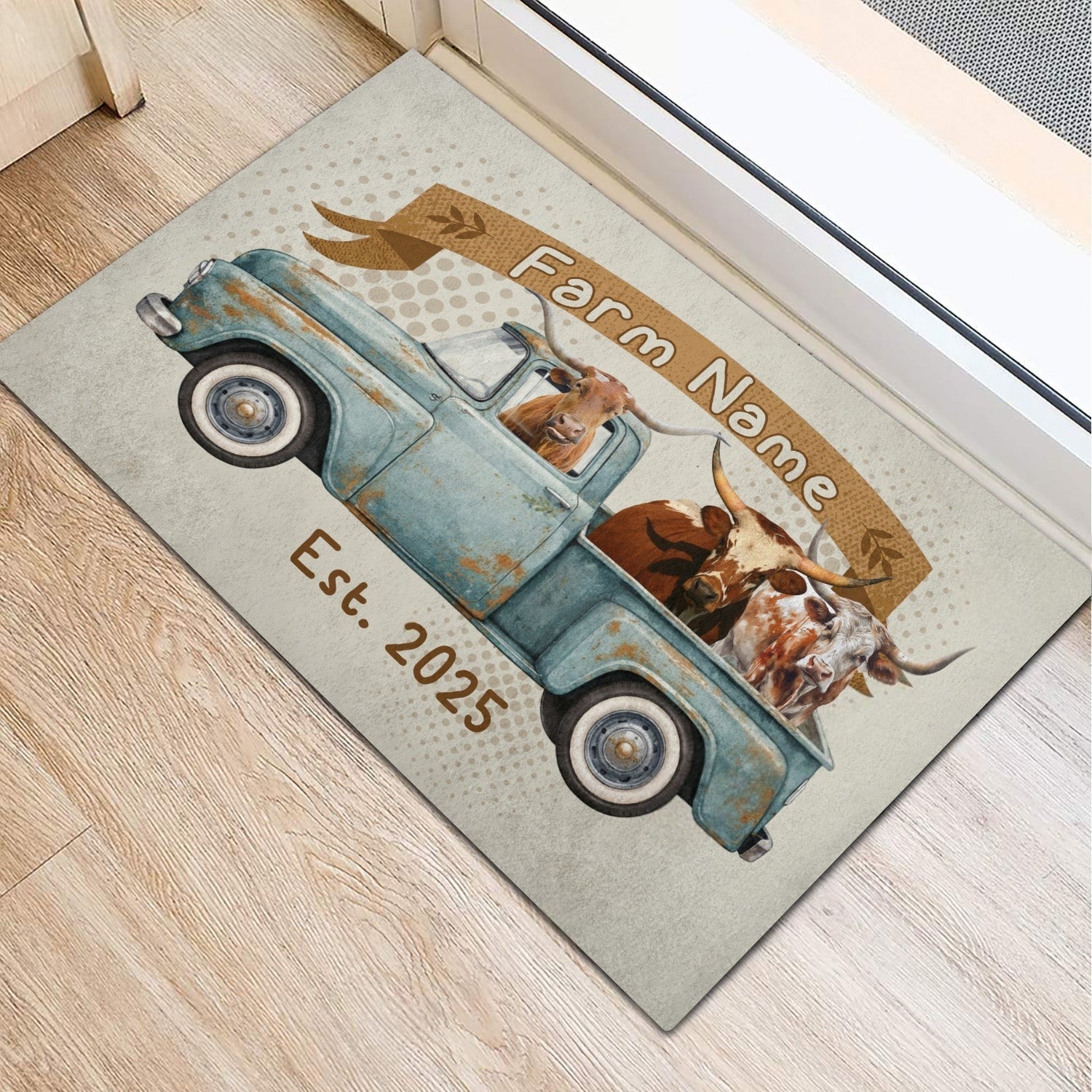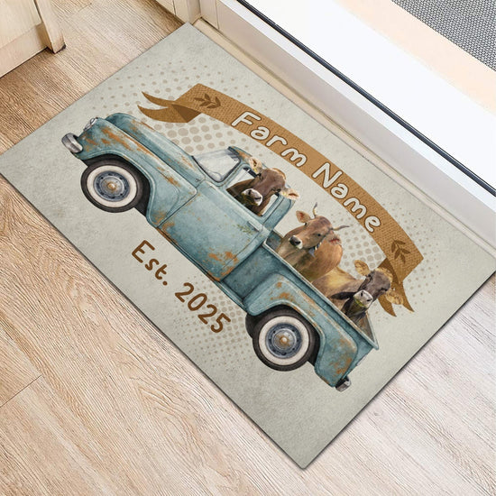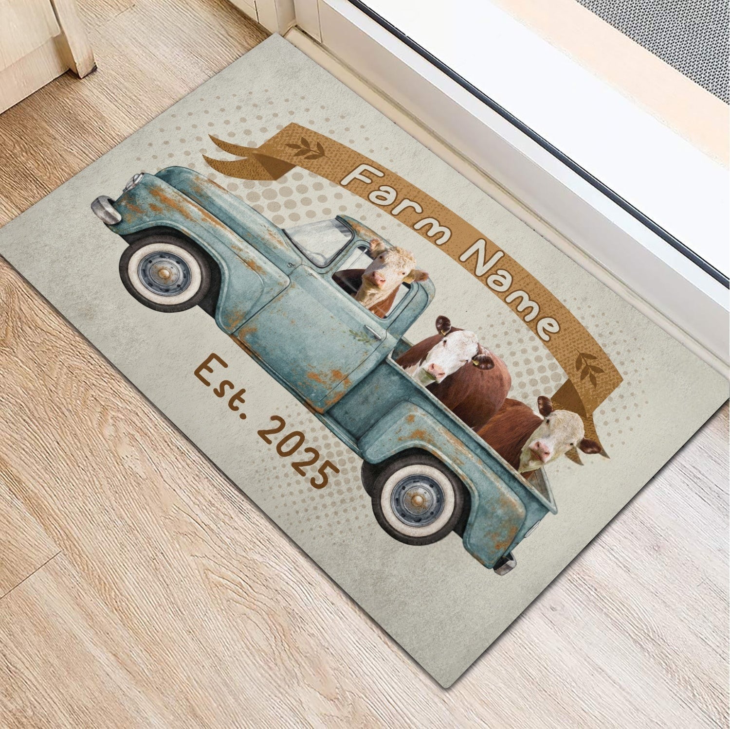 Joycorners Welcome to Our Farm Personalized Cow Truck Doormat (12 Cattle Breeds)