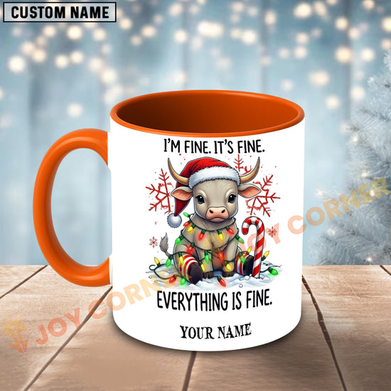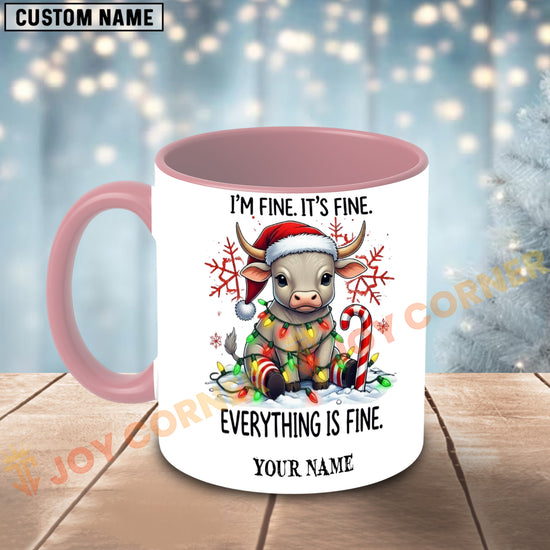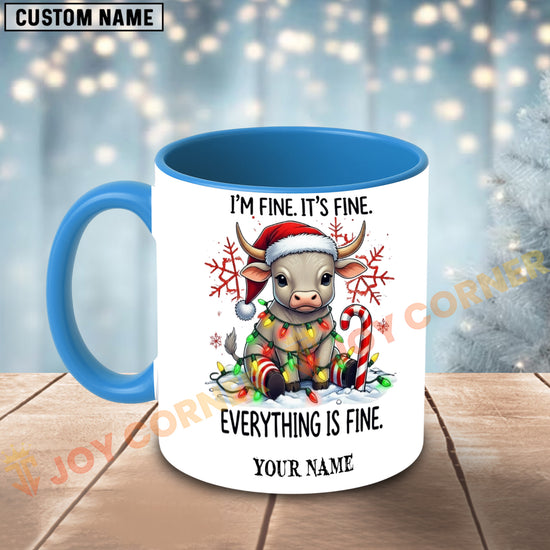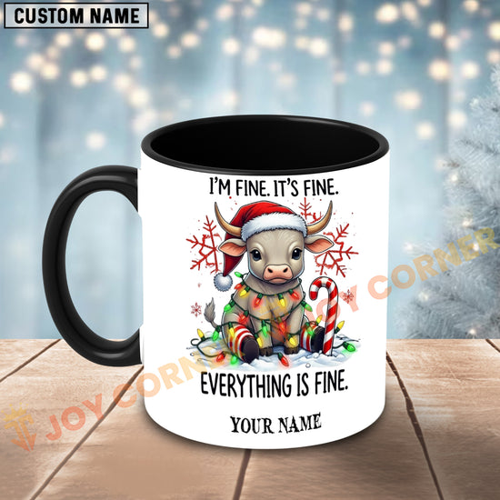 Joycorners White Charolais Cow Christmas Everything Is Fine Custom Name Mug