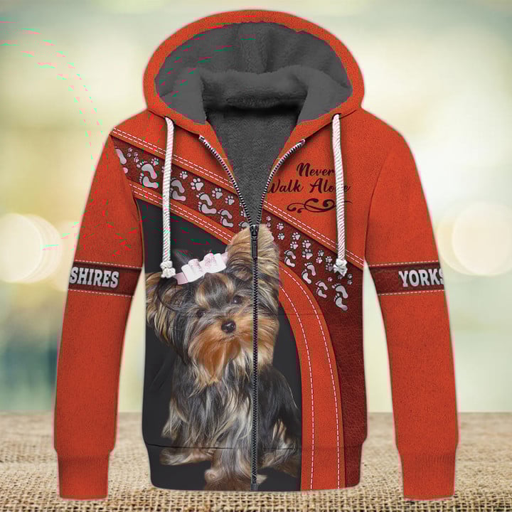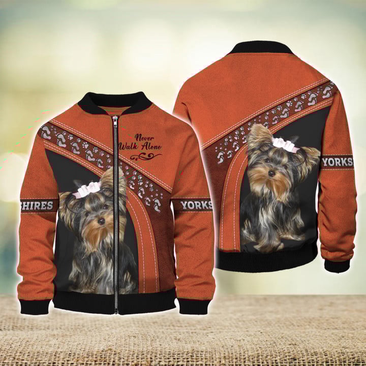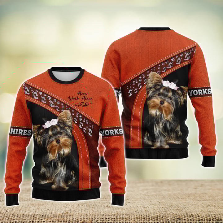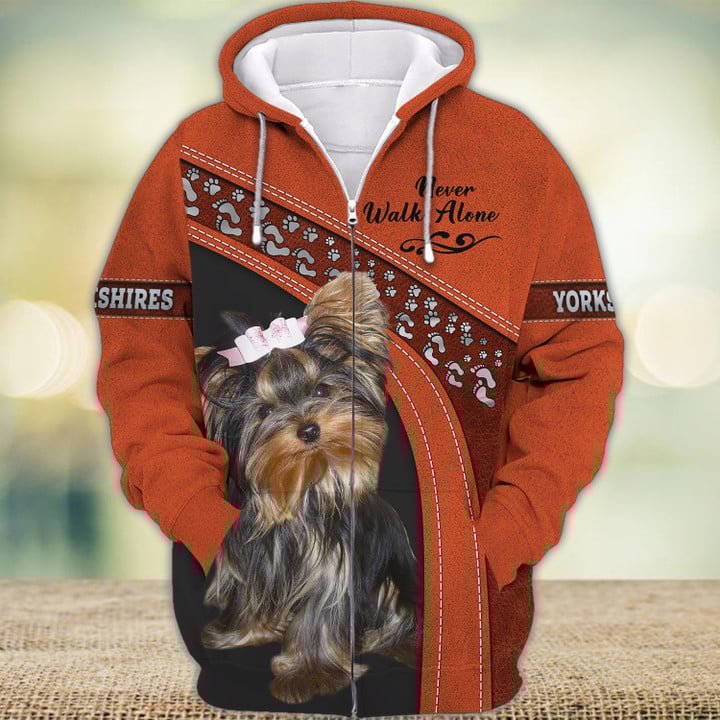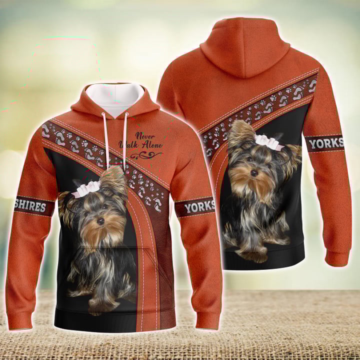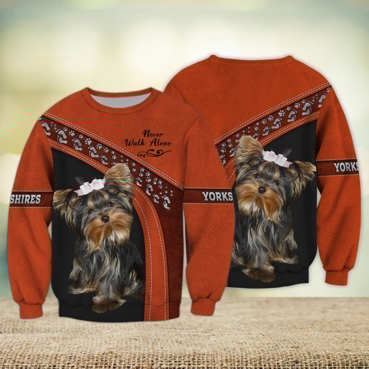 Joycorners Yorkshire Lover Never Walk Alone ( Orange ) 3D Custom Name And Dog Full Print Shirts