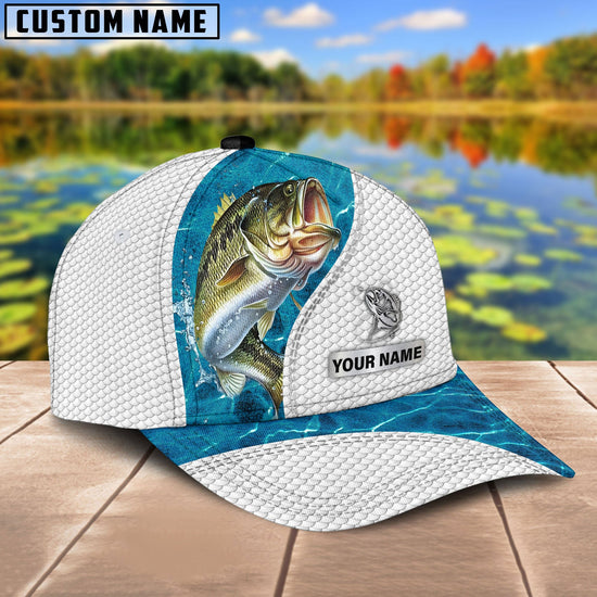 Joycornerss Custom Name Bass Fishing Blue Water 3D Classic Cap