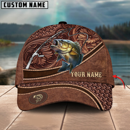 Joycornerss Custom Name Bass Fishing Carving Leather Pattern 3D Classic Cap