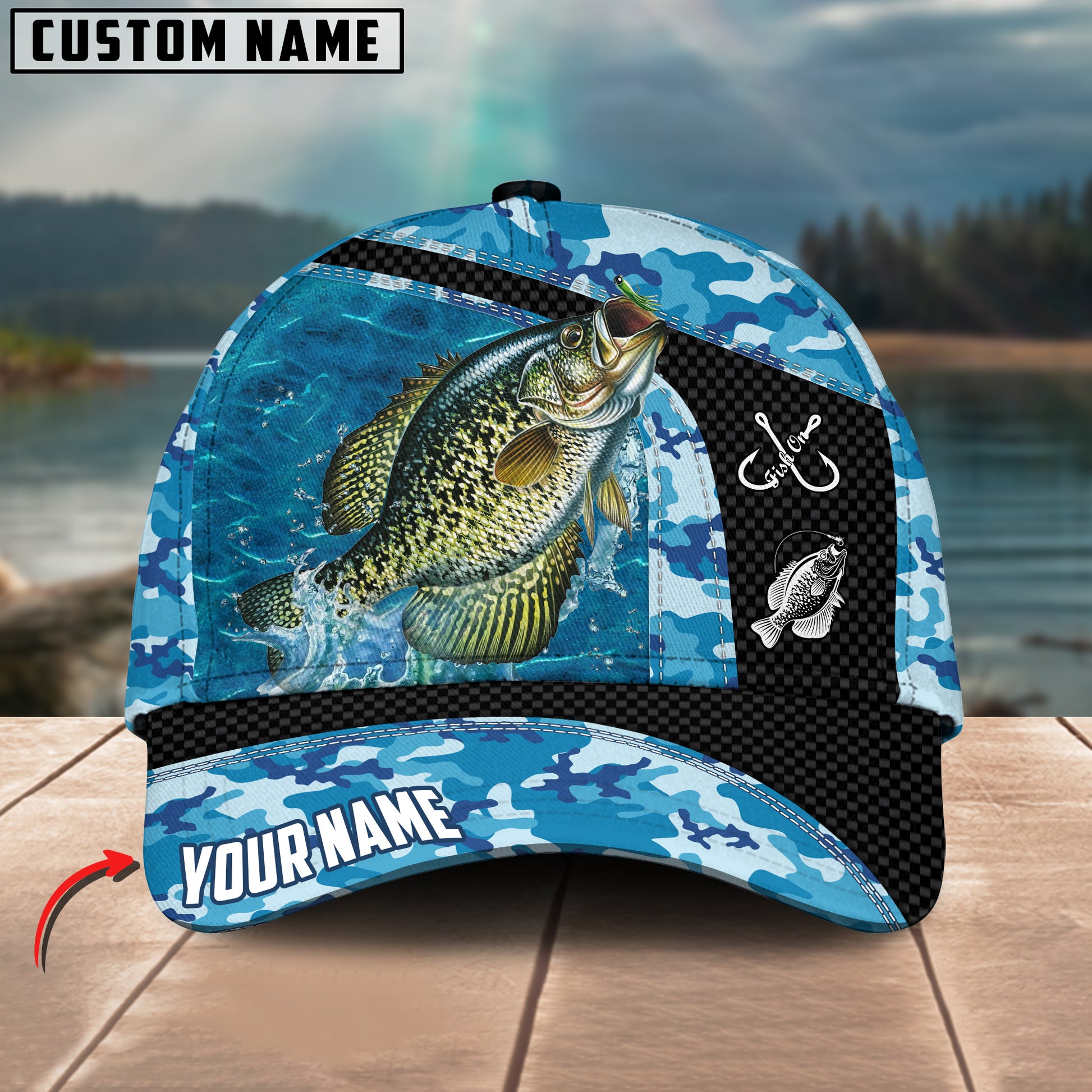 Joycornerss Custom Name Crappie Fishing Blue Camo 3D Classic Cap