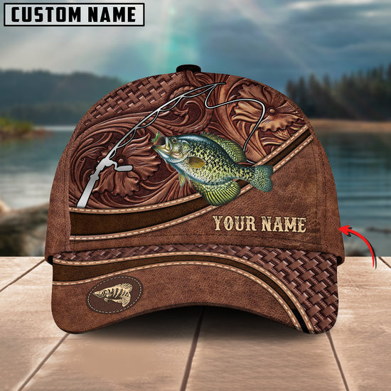 Joycornerss Custom Name Crappie Fishing Carving Leather Pattern 3D Classic Cap