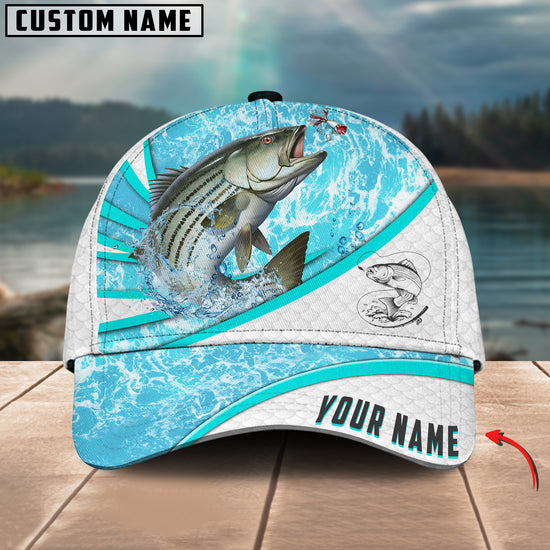 Joycornerss Custom Name Striped Fishing Water Tornado 3D Classic Cap