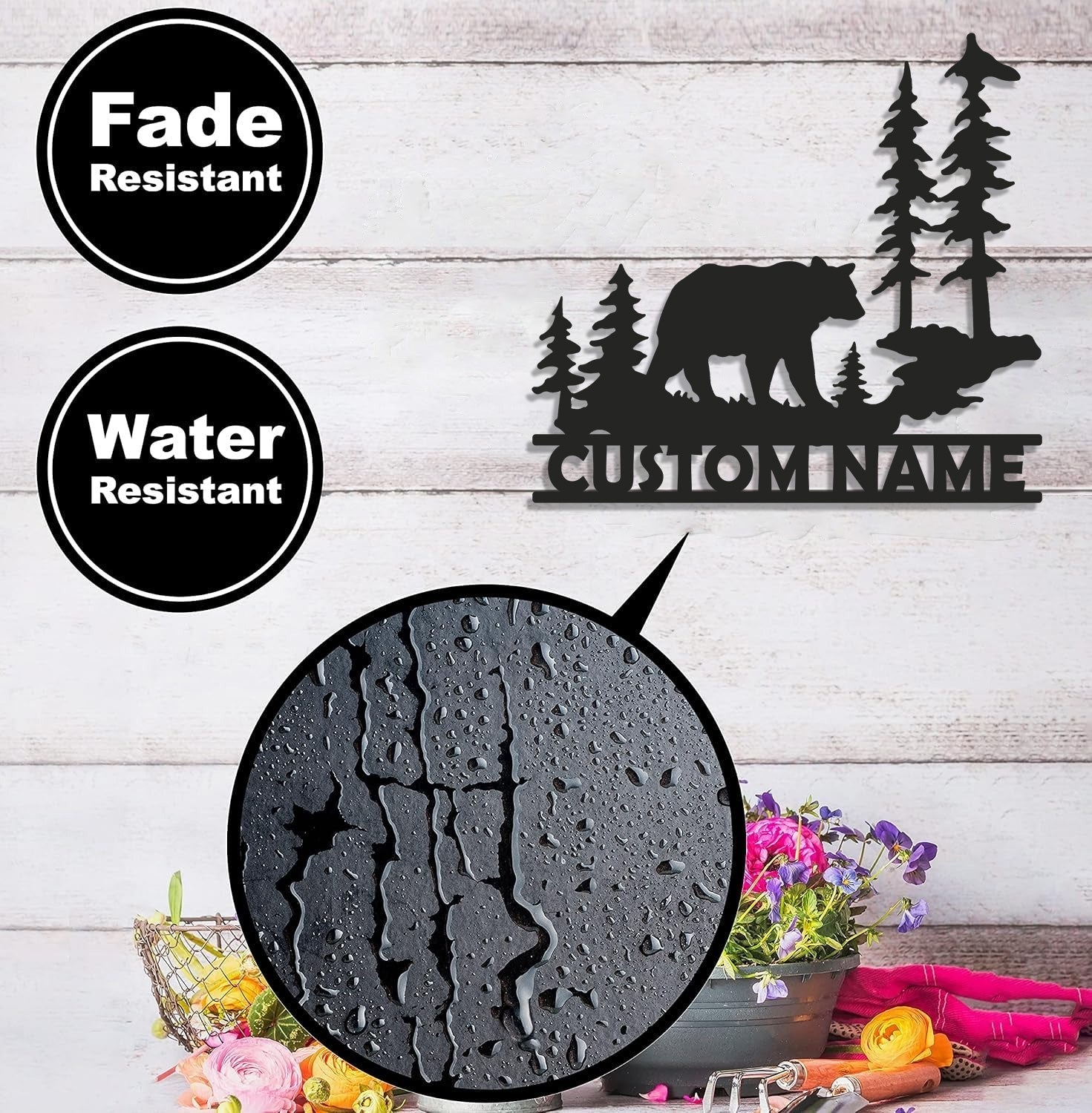 Maxcorners Personalized Bear Metal Sign WITH LED/WITHOUT LED - Rustic Cabin Name Sign, Wildlife Forest Wall Art for Lodge & Outdoor Decor MT0110
