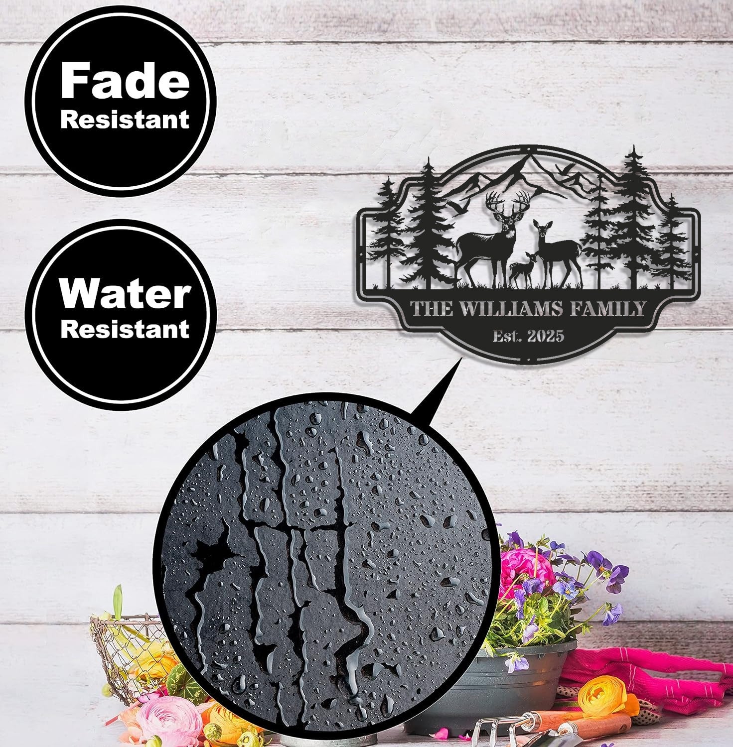 Maxcorners Personalized Deer Family Metal Sign WITH LED/WITHOUT LED - Rustic Cabin Wall Decor, Custom Name Hunting Lodge Sign MT0110