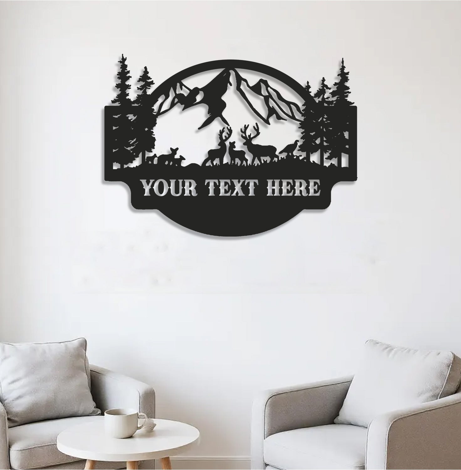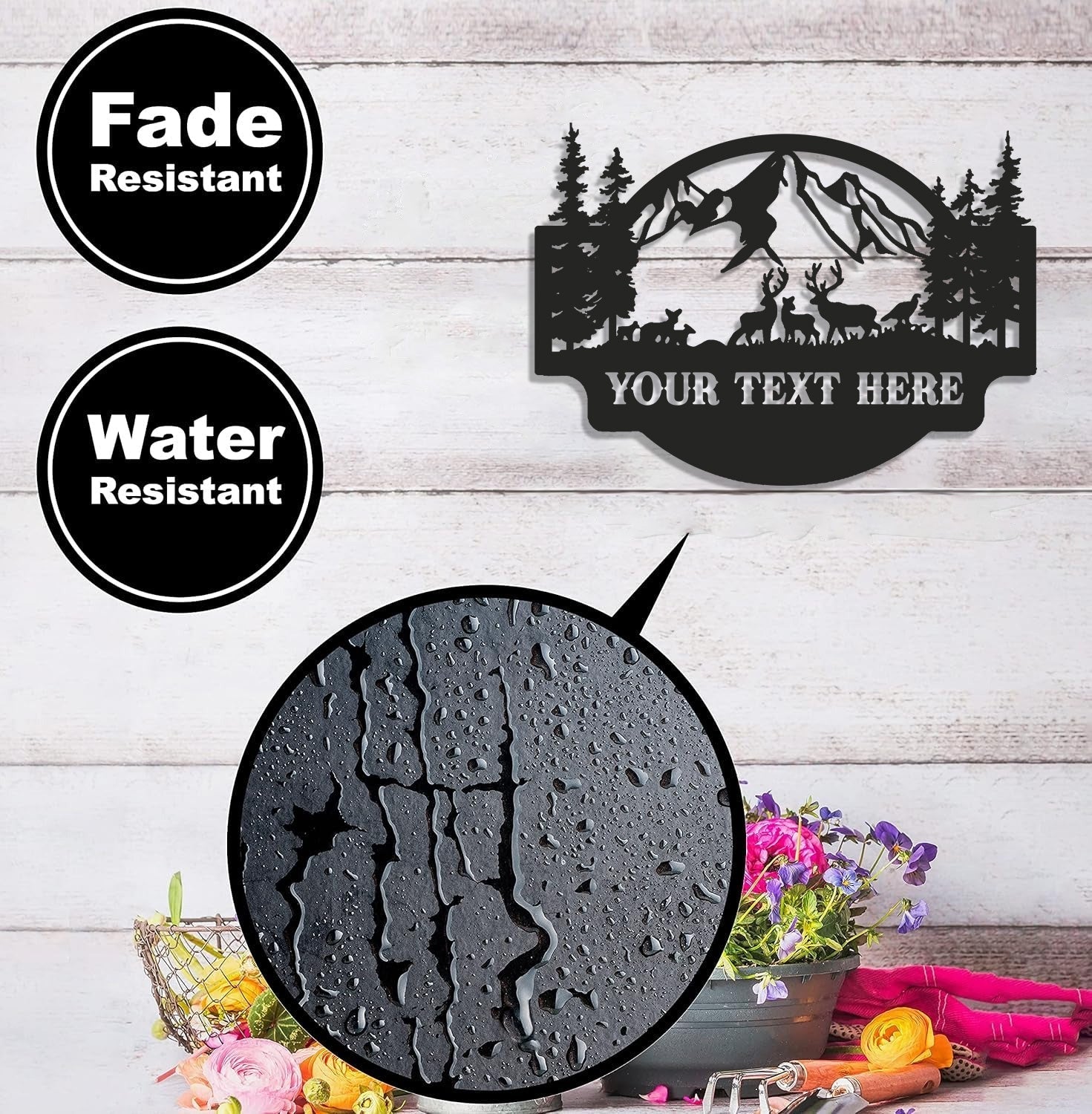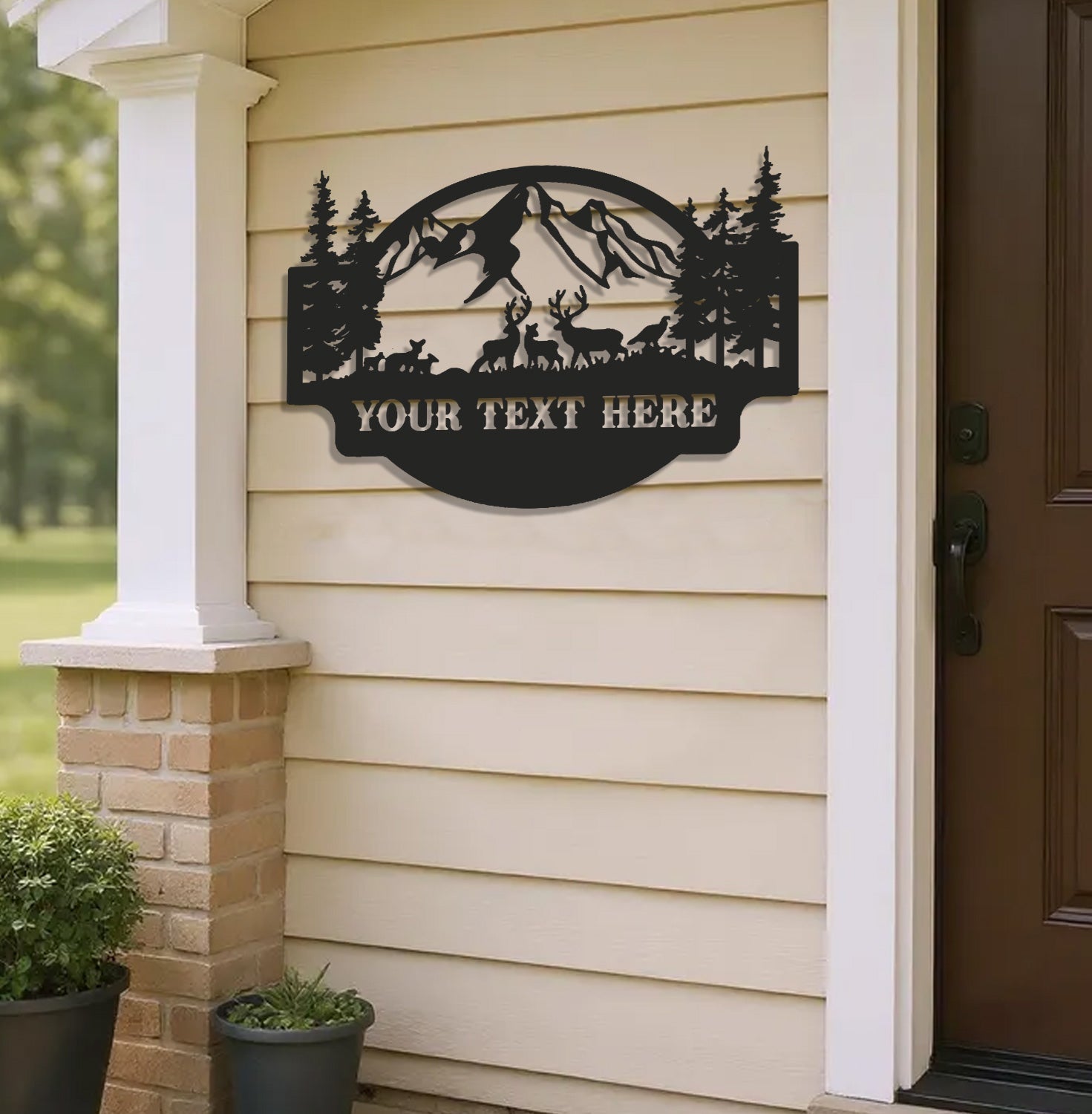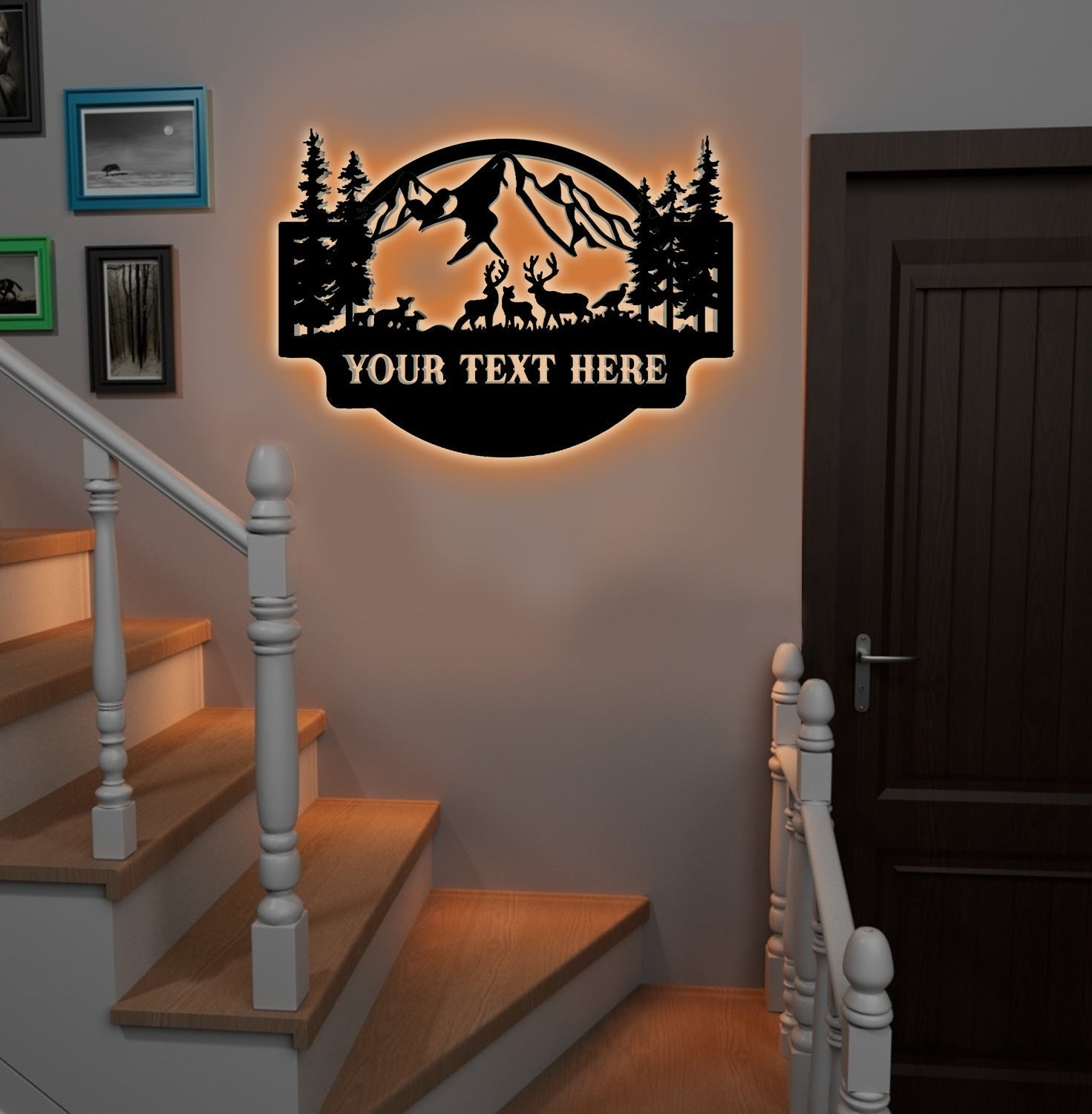 Maxcorners Personalized Deer Metal Sign WITH LED/WITHOUT LED - Mountain Cabin Name Sign, Rustic Wildlife Outdoor Wall Art for Lodge & Porch Decor MT0110