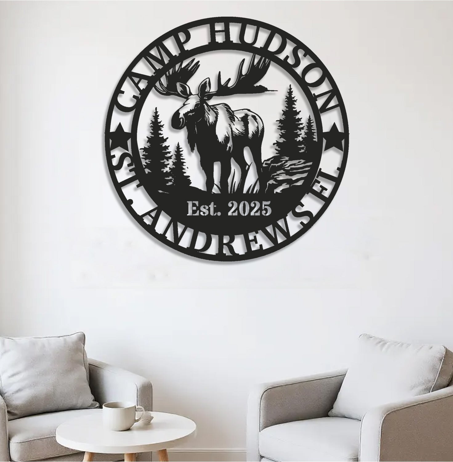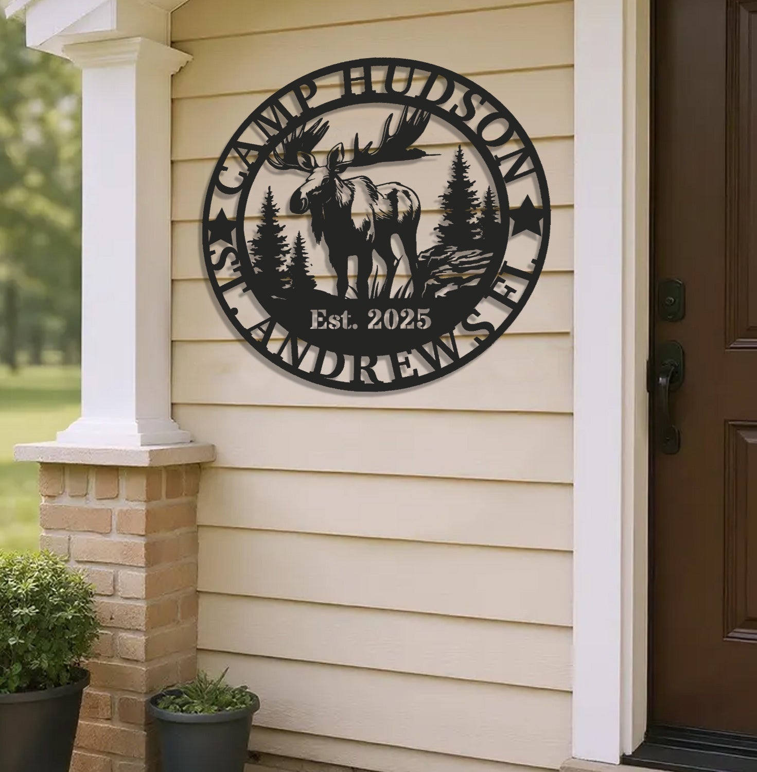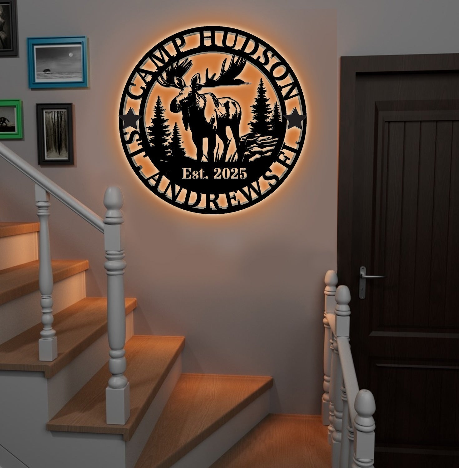 Maxcorners Personalized Moose Metal Sign WITH LED/WITHOUT LED - Rustic Cabin Name Sign, Wildlife Wall Art for Lodge, Camp & Outdoor Decor MT0110